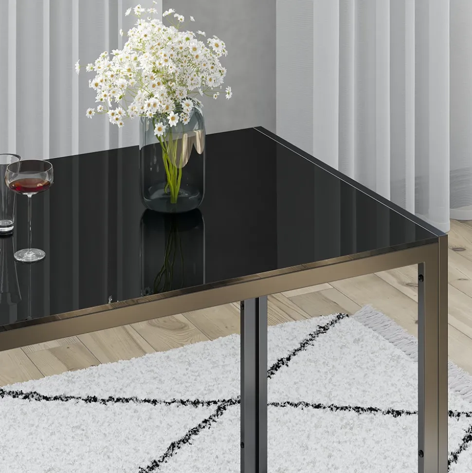 - MATERIAL: Die Tischbeine bestehen aus pulverbeschichtetem Metall, während die Glasplatte aus gehärtetem Glas gefertigt ist. Pflegen Sie sie leicht mit einem feuchten Tuch für dauerhafte Eleganz