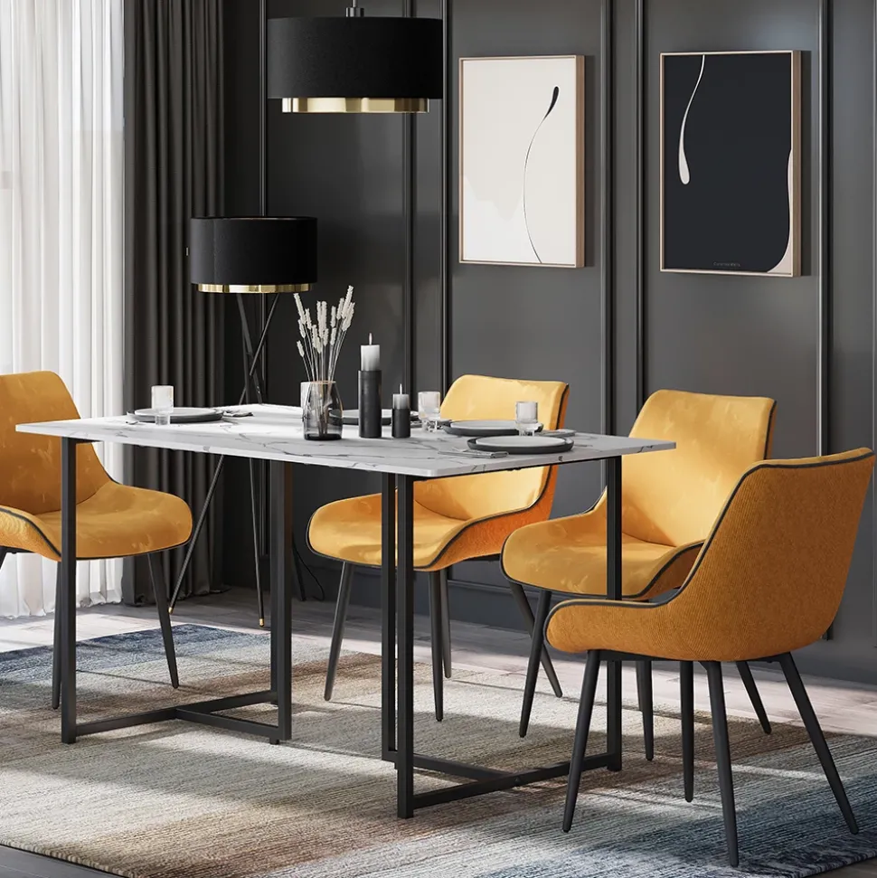Der Esstisch Merido besticht durch sein modernes Design und die elegante Farbgebung, die sich perfekt in verschiedene Einrichtungsstile integriert. Mit seiner robusten Bauweise und großzügigen Tischplatte bietet er sowohl Funktionalität als auch ästhetischen Mehrwert für jedes Esszimmer.