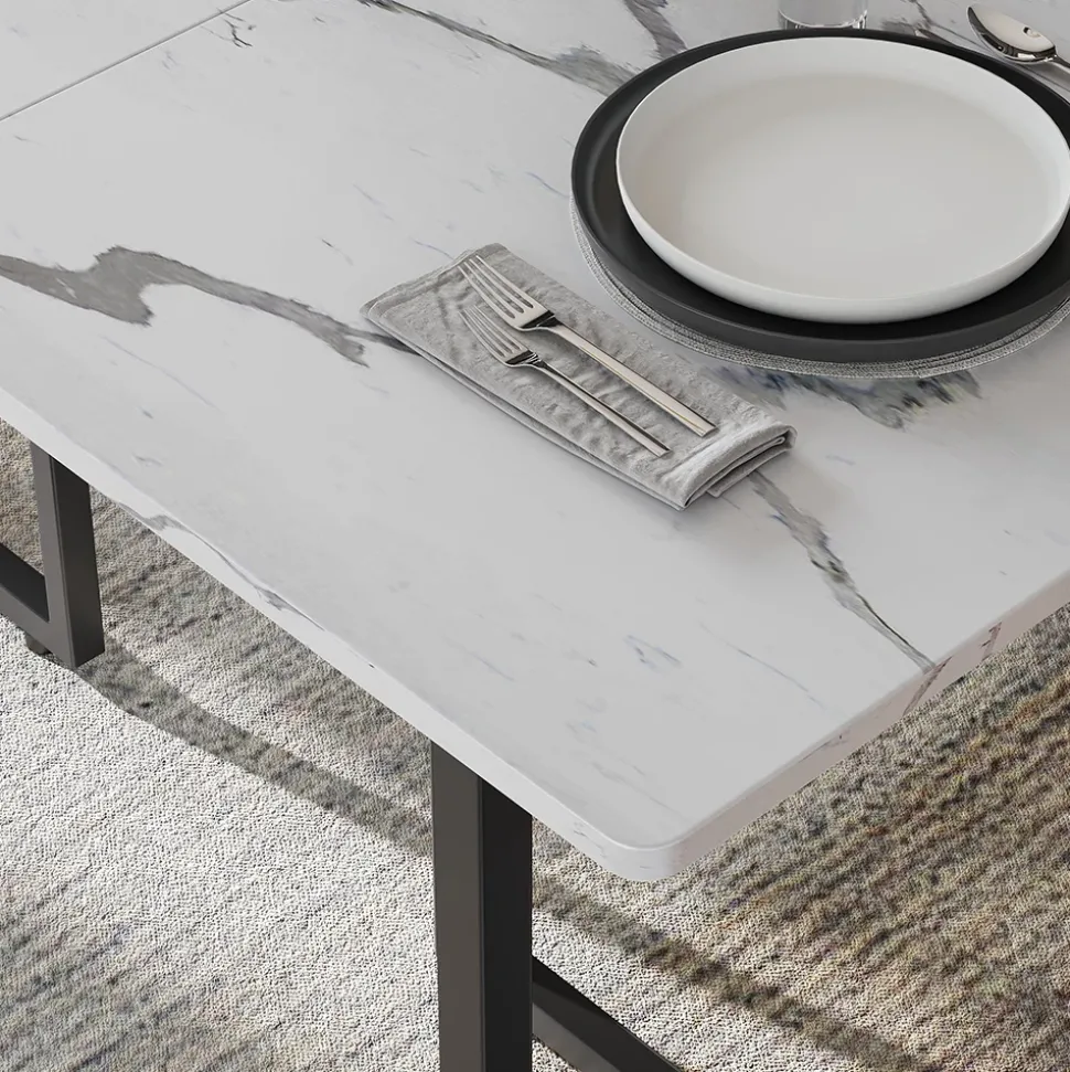 - MATERIAL: Der Küchentisch besteht aus einer pflegeleichten MDF, 15 mm, Melaminharzbeschichtung und die Beine besteht aus pulverbeschichtetem Stahl, 25 mm.