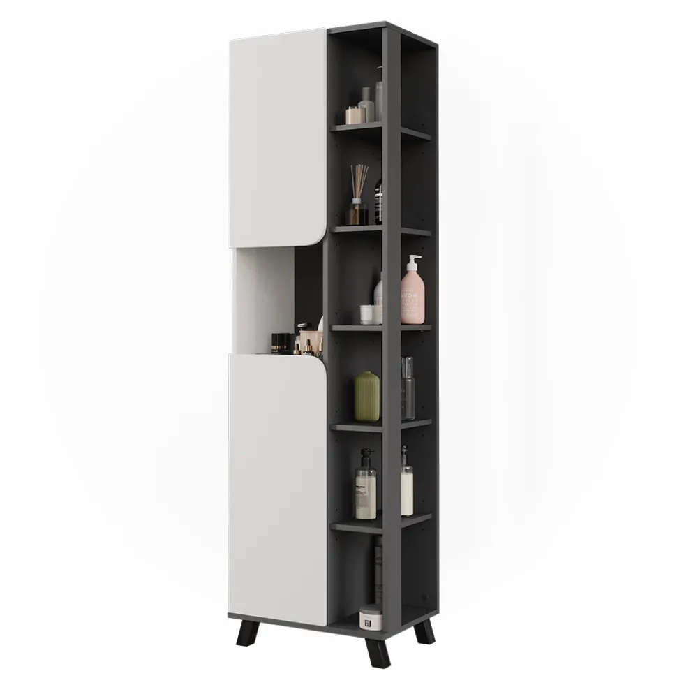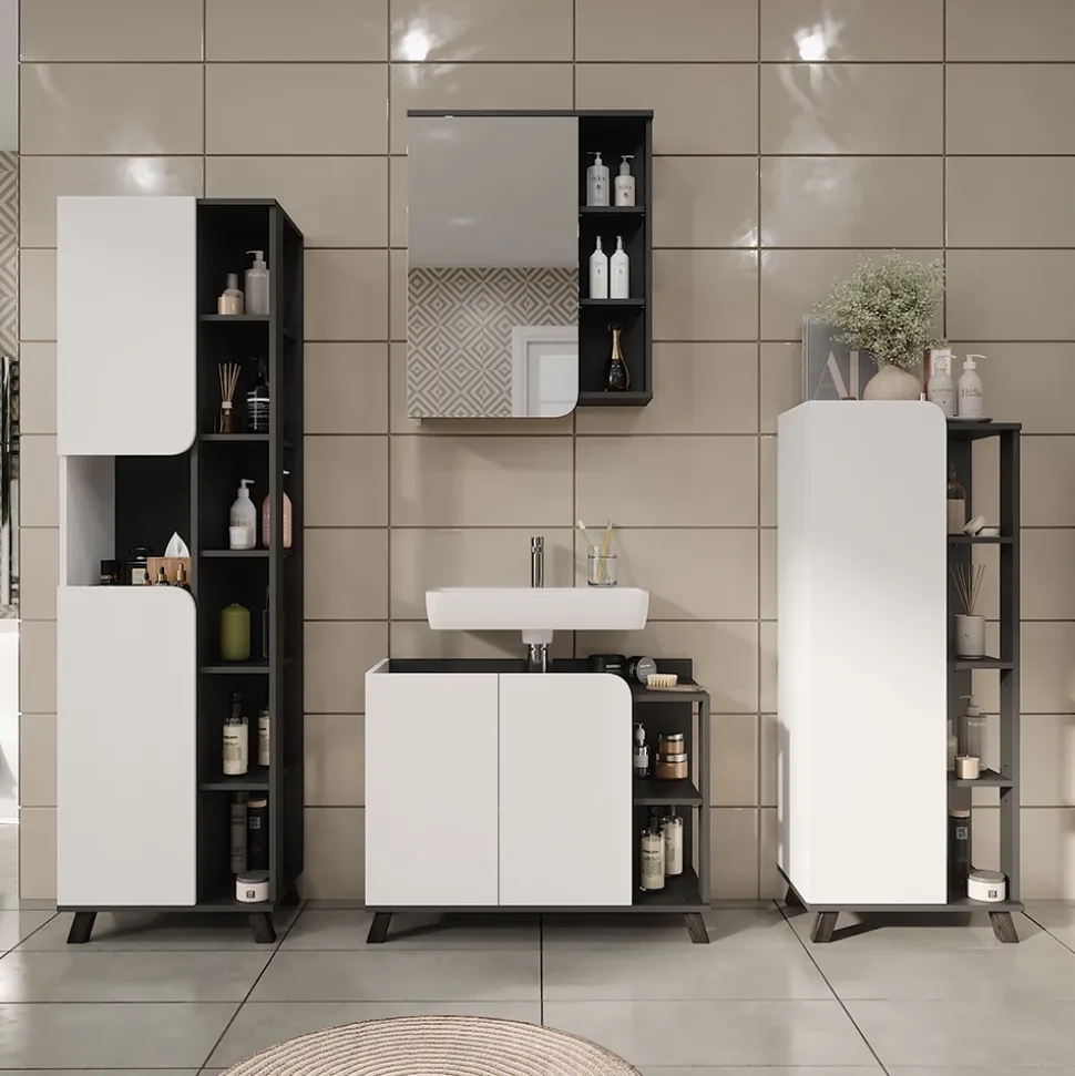 - Für alle, die nach einer platzsparenden Lösung suchen, ist „Karen“ der ideale schmale Badezimmerschrank. Sein optimales Design passt in jede Wohnung und sorgt für stilvolle Ordnung