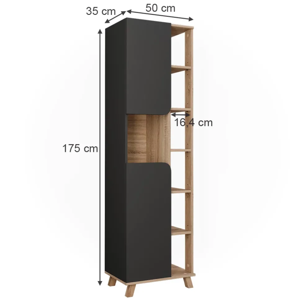 - MAßE: Der Hochschrank, mit 2 Türen, hat eine Tiefe von 35 cm, eine Breite von 50 cm und eine Höhe von 175 cm.