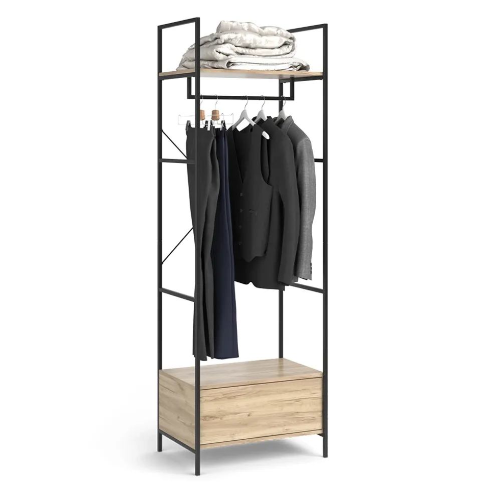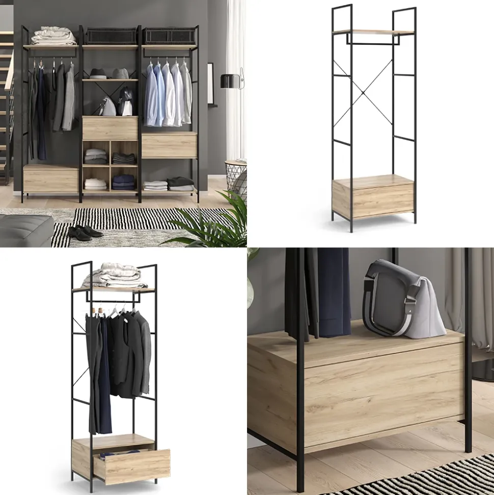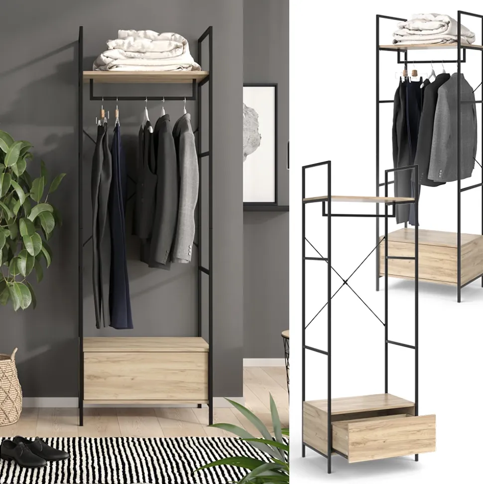 - Der Garderobenschrank verfügt über eine Kleiderstange und eine praktische Schublade. Er harmoniert perfekt mit anderen Möbeln im Raum.