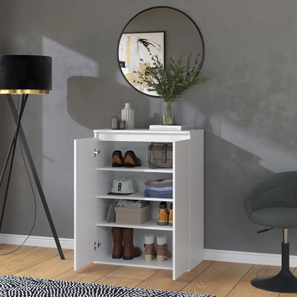 Der Schrank Claus besticht durch sein modernes Design und seine praktische Aufteilung mit zwei Türen und vier Schubladen, die großzügigen Stauraum bieten. Ideal für jedes Zimmer, fügt sich der Schrank harmonisch in verschiedene Einrichtungsstile ein.