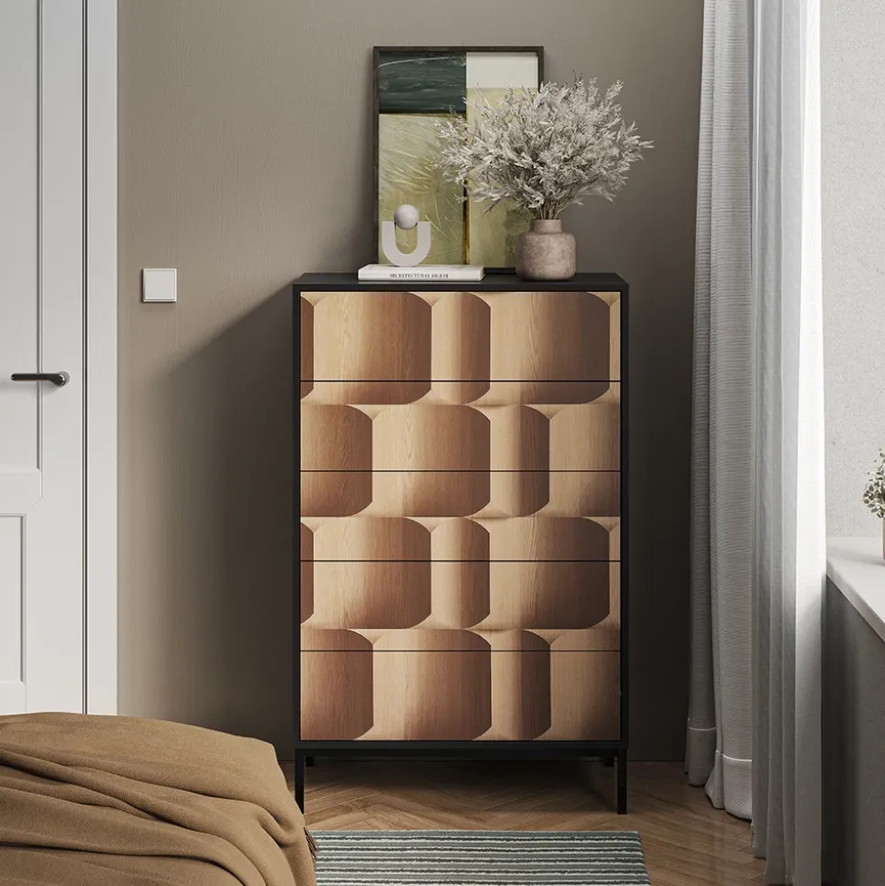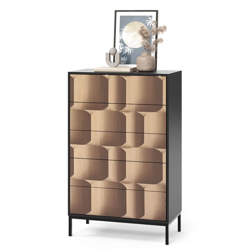- Der moderne Kommodenschrank verfügt über 5 Schubkästen mit Push-to-open-Funktion. Durch die eiche 3D Optik ist er ein echter Hingucker in jedem Raum.