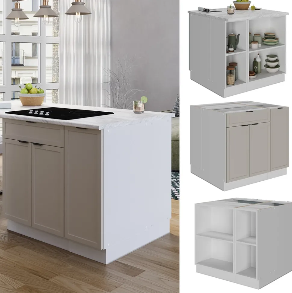 - Die Kochinsel für die Küche bietet die Möglichkeit, zusätzliche Module zu erwerben und nach Belieben umzustellen. Die MDF-Fronten verleihen dem Produkt ein modernes und ansprechendes Design.
