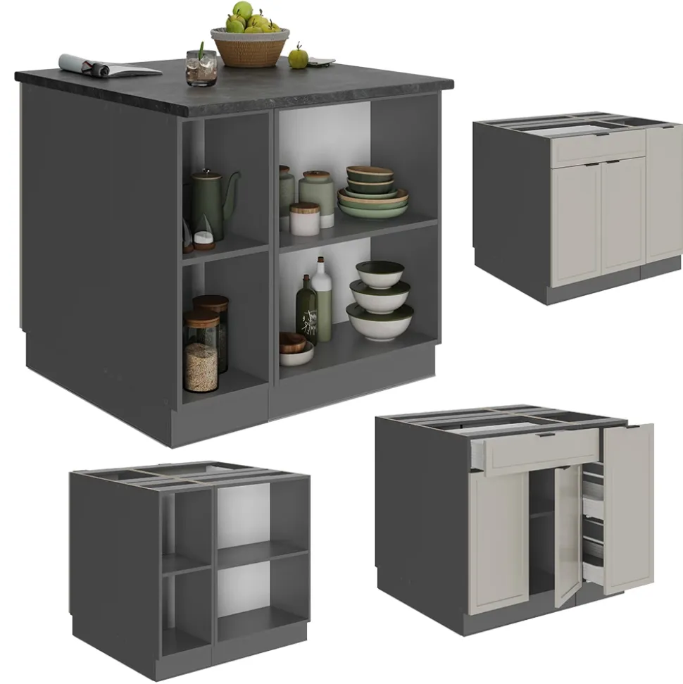 - Die Kochinsel für die Küche bietet zusätzliche Module, die nach Belieben umgestellt werden können. Die MDF-Fronten verleihen dem Produkt ein modernes und stilvolles Design.