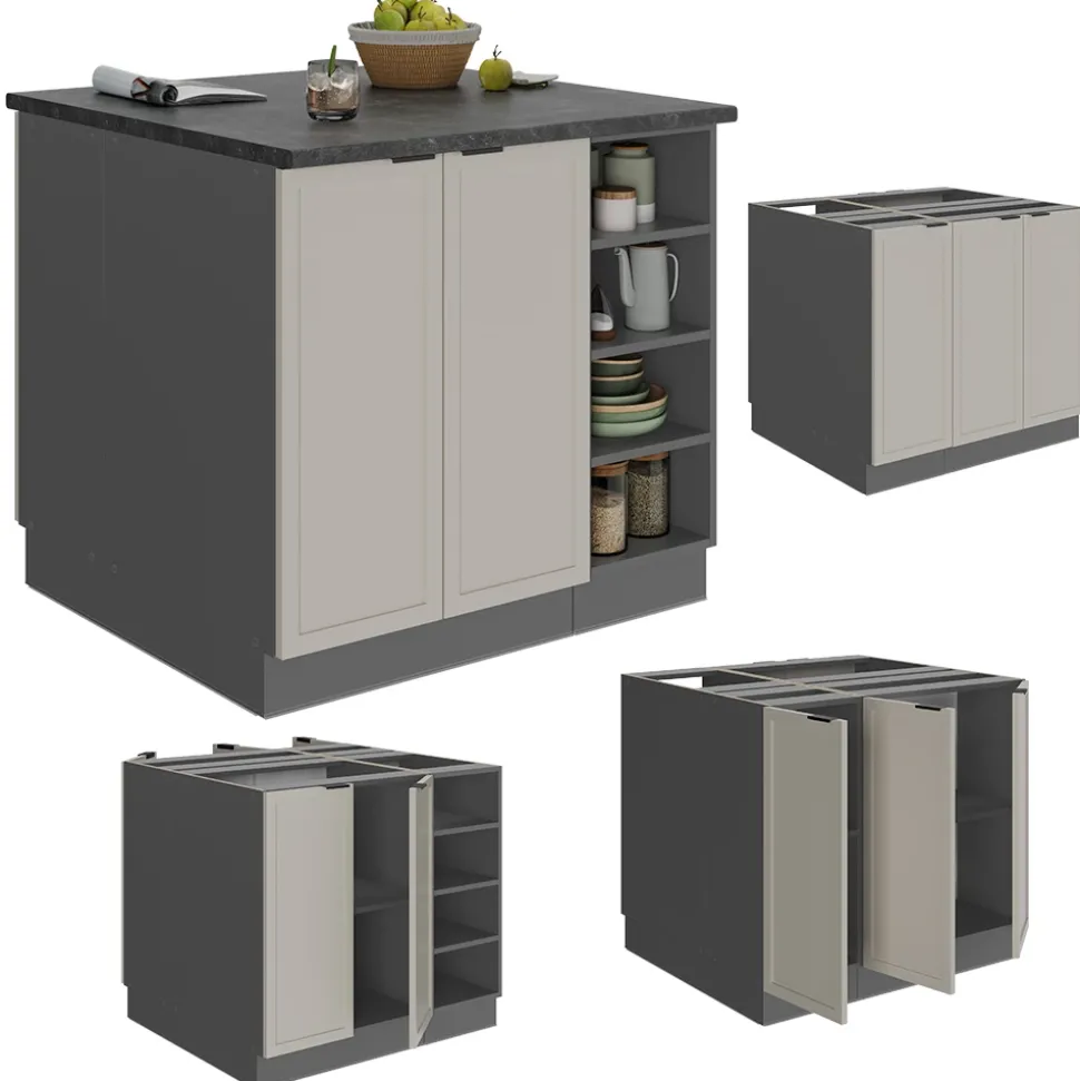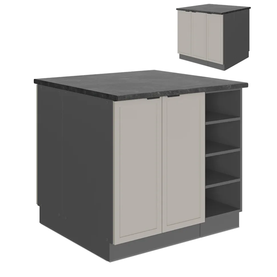 - MAßE: Der Insel-Küchenschrank hat eine Breite von 90 cm, eine Höhe von 82 cm und eine Tiefe von 82 cm. Alle detaillierten Größen sind auf den Fotos angegeben.