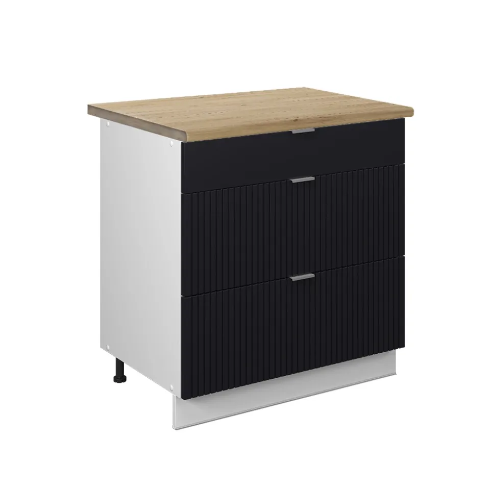 - MAßE: Der Schubladenunterschrank hat eine Breite von 80 cm, eine Höhe von 82 cm und eine Tiefe von 60 cm. Alle detaillierten Größen sind auf den Fotos angegeben.