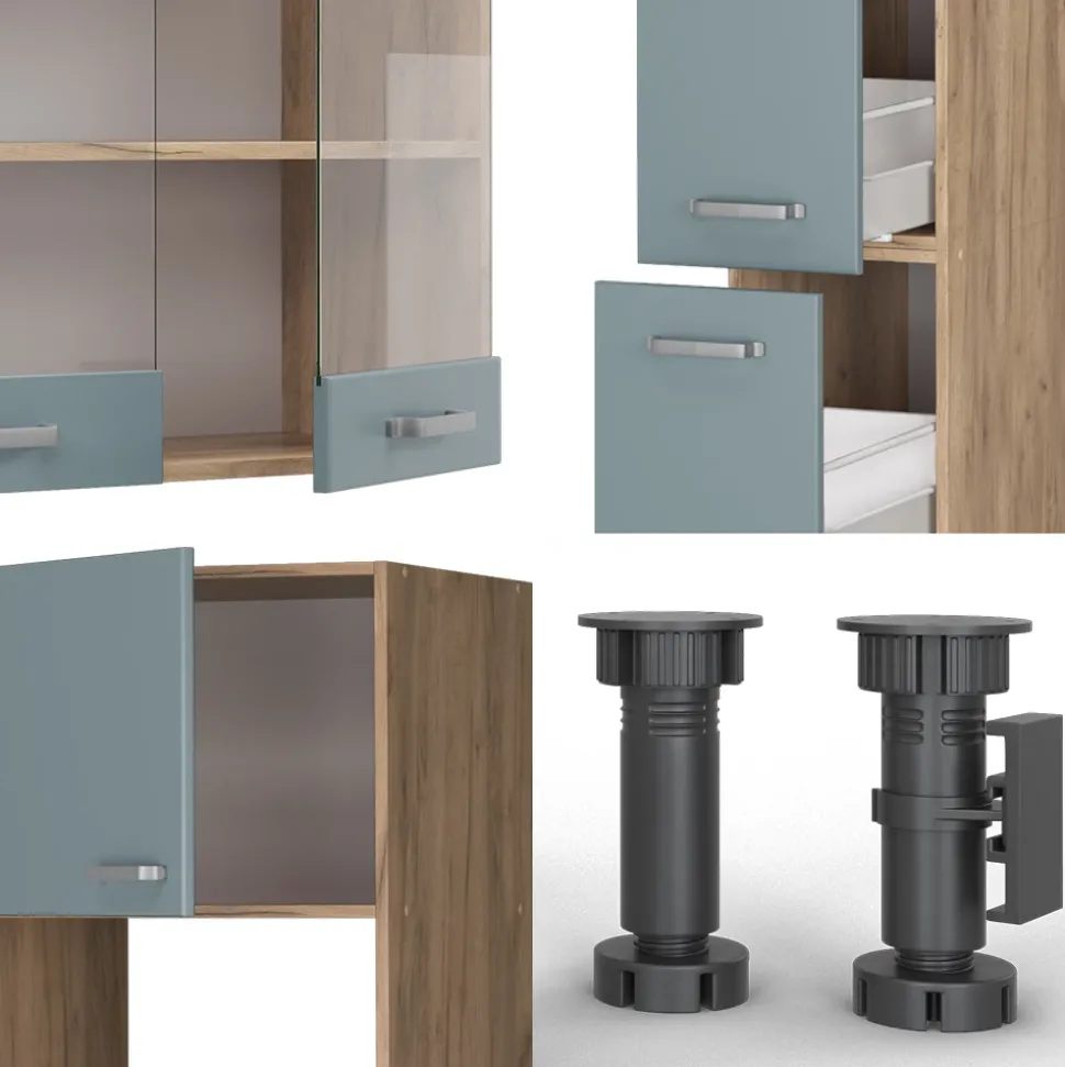 R-Line“ ist eine vielseitige Möbellinie mit Küchenzeilen, montagefertigen Komponenten und Schränken für den, Haushalts-, Wäsche- und Kreativbereich. Sie bietet eine breite Auswahl an Farben und Größen, die individuelle Lösungen für jeden Raum ermöglichen. Die Unterschränke sind mit verstellbaren Füßen ausgestattet, so dass sie einzeln oder als komplettes Set konfiguriert werden können, um den unterschiedlichen Bedürfnissen gerecht zu werden und die Funktionalität in verschiedenen Umgebungen zu verbessern.