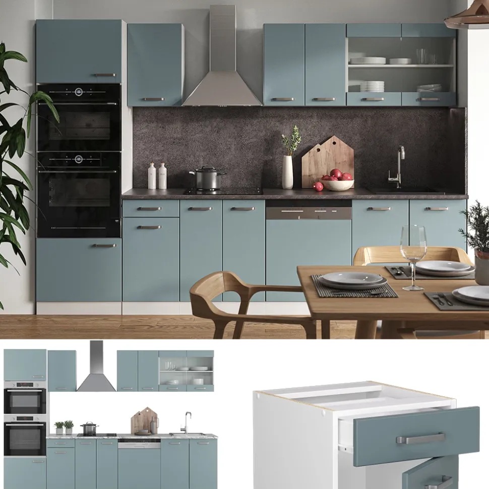 R-Line“ ist eine vielseitige Möbellinie mit Küchenzeilen, montagefertigen Komponenten und Schränken für den, Haushalts-, Wäsche- und Kreativbereich. Sie bietet eine breite Auswahl an Farben und Größen, die individuelle Lösungen für jeden Raum ermöglichen. Die Unterschränke sind mit verstellbaren Füßen ausgestattet, so dass sie einzeln oder als komplettes Set konfiguriert werden können, um den unterschiedlichen Bedürfnissen gerecht zu werden und die Funktionalität in verschiedenen Umgebungen zu verbessern.