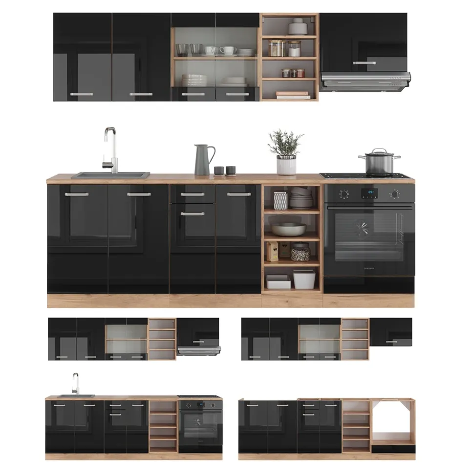 Die R-Line – Küchenzeile ist der Inbegriff einer Komplettlösung für Ihre Küche. Mit diesem Küchenblock erhalten Sie Küchenmöbel, Einbauküche und Komplettküche in einem, alles zu einem unschlagbaren Preis-Leistungs-Verhältnis. Der Clou: Sie können die Module nach Belieben umstellen und so Ihre Küche individuell gestalten! Zusätzliche Module können ebenfalls bezogen werden, damit Ihre Küche für Ihre Bedürfnisse perfekt ausgestattet ist. Die höhenverstellbaren Füße machen den Aufbau und die Ausrichtung kinderleicht und sorgen dafür, dass die Küchenzeile auch auf unebenen Böden stabil steht. Werten Sie Ihre Küche auf und genießen Sie das Kochen und Essen in dieser perfekten Komplettlösung, die Ihnen Zeit und Nerven spart!
