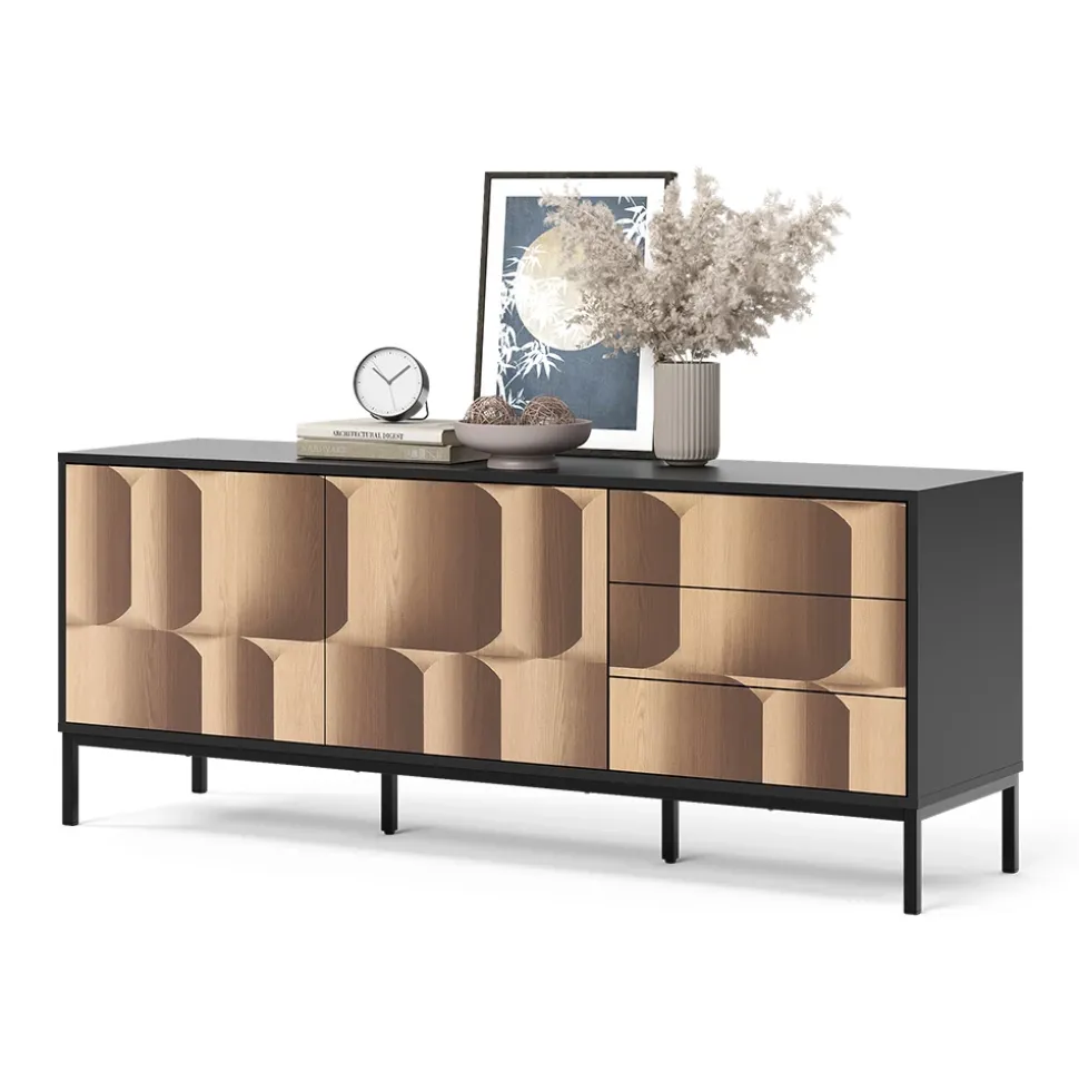 - Der moderne Fernsehtisch verfügt über 2 Einlegeböden und eine Push-to-open-Funktion für einfache Handhabung. Der 3D-Look verleiht dem Möbelstück eine stilvolle Optik.