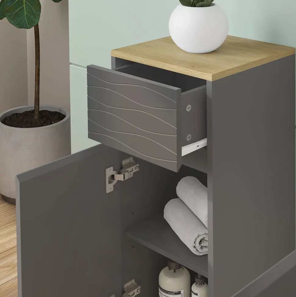 Träumen Sie von einem perfekt organisierten Badezimmer, in dem Sie all Ihre Pflegeprodukte ordentlich verstauen können? Mit dem Midischrank Livia wird Ihr Traum wahr! Dieser stilvolle Badschrank bietet nicht nur ausreichend Stauraum mit 2 Türen und 1 Schublade, sondern überzeugt auch mit seinem zeitlosen Design, das zu jedem Einrichtungsstil passt. Die hochwertige Verarbeitung aus Holz garantiert zudem eine lange Lebensdauer. Egal ob Sie allein oder mit Ihrer Familie leben, dieser Badezimmerschrank wird Ihnen helfen, Ihr Badezimmer aufgeräumt zu halten. Gönnen Sie sich dieses praktische Möbelstück und erleichtern Sie sich den Alltag!