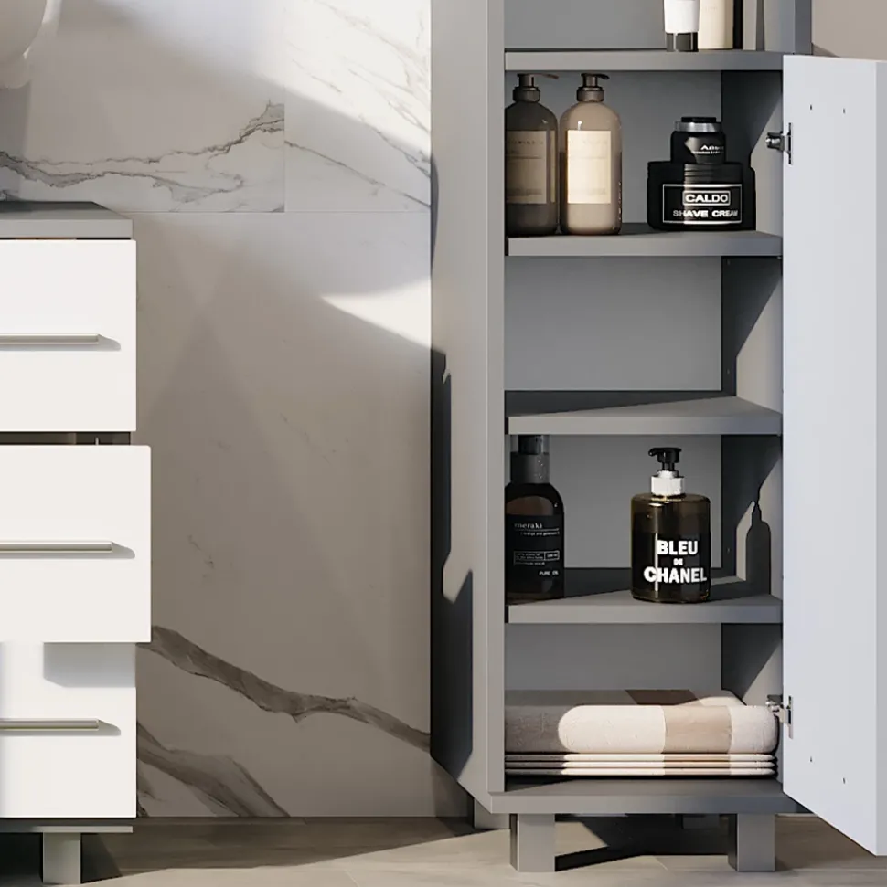 - Der Badezimmerschrank „Ilias“ ist eine hervorragende Wahl für jede Wohnung. Mit seinem durchdachten Design und stilvollen Aussehen ist er ein echtes Must-have für Ihr Zuhause.