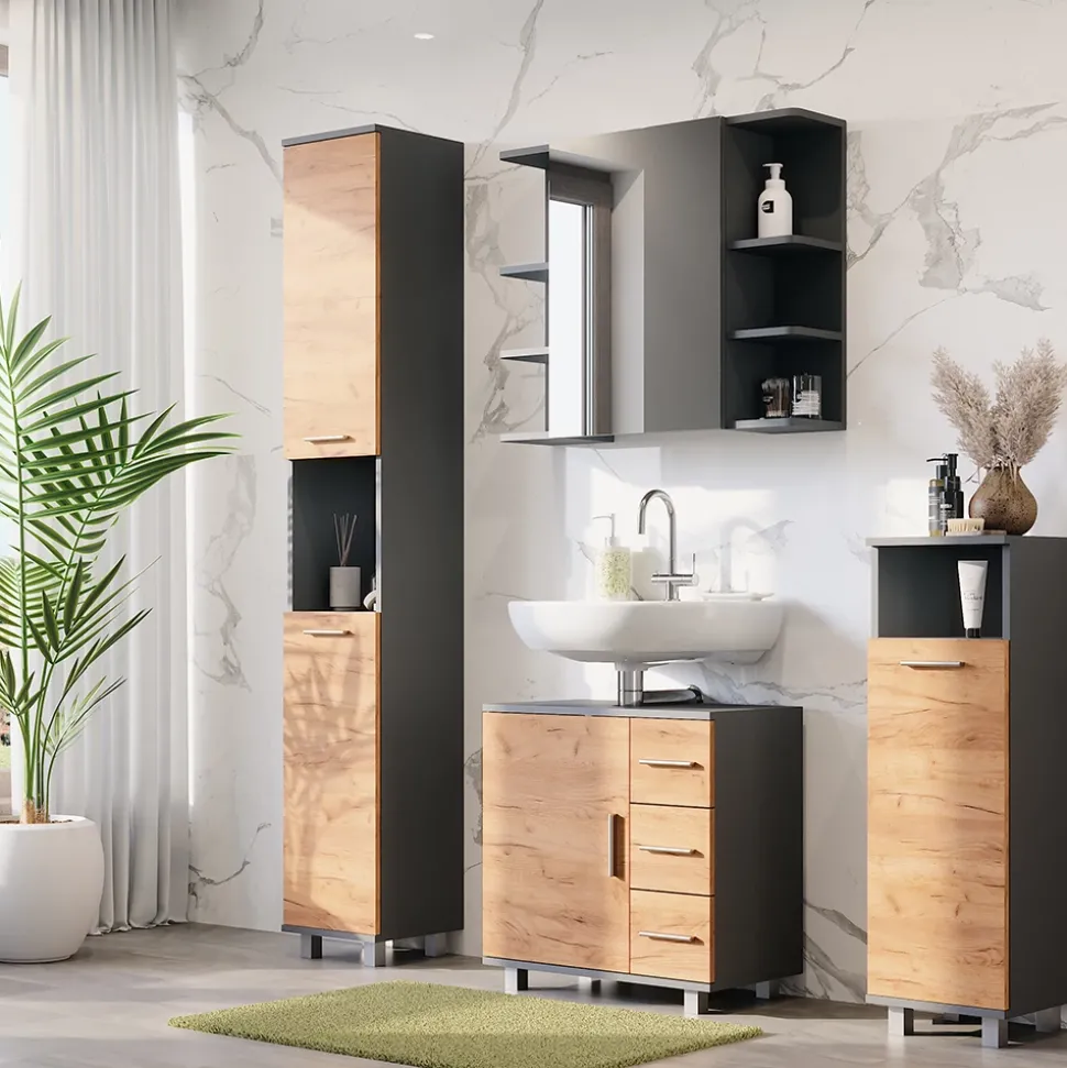 - „Ilias“ ist die ideale Wahl für jedes Zuhause – stilvoll im Design und mit viel Stauraum für Ihre Badutensilien.
