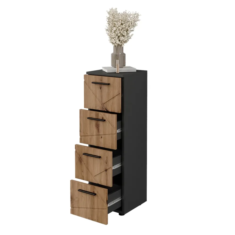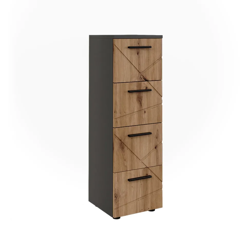Mit dem Badschrank „Irma“ wird Ihr Badezimmer zur echten Wohlfühloase! Der Midischrank bietet mit vier geräumigen Schubladen reichlich Platz für Handtücher, Kosmetik und vieles mehr. Ob im kleinen Gästebad oder im Familienbad – „Irma“ ist vielseitig einsetzbar und sorgt für Ordnung und Struktur. Schluss mit dem Chaos im Badezimmer! Gönnen Sie sich dieses praktische und stilvolle Möbelstück und verwandeln Sie Ihr Bad in einen gemütlichen Rückzugsort. Entdecken Sie die vielfältigen Möglichkeiten, die Ihnen der Badschrank „Irma“ bietet – für eine aufgeräumte und entspannte Atmosphäre in Ihrem Zuhause.