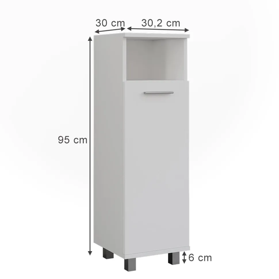 - MAßE: Das Badezimmermöbel hat 2 Türen. Die Maße: Tiefe 30 cm, Breite 30,2 cm, Höhe 95 cm.
