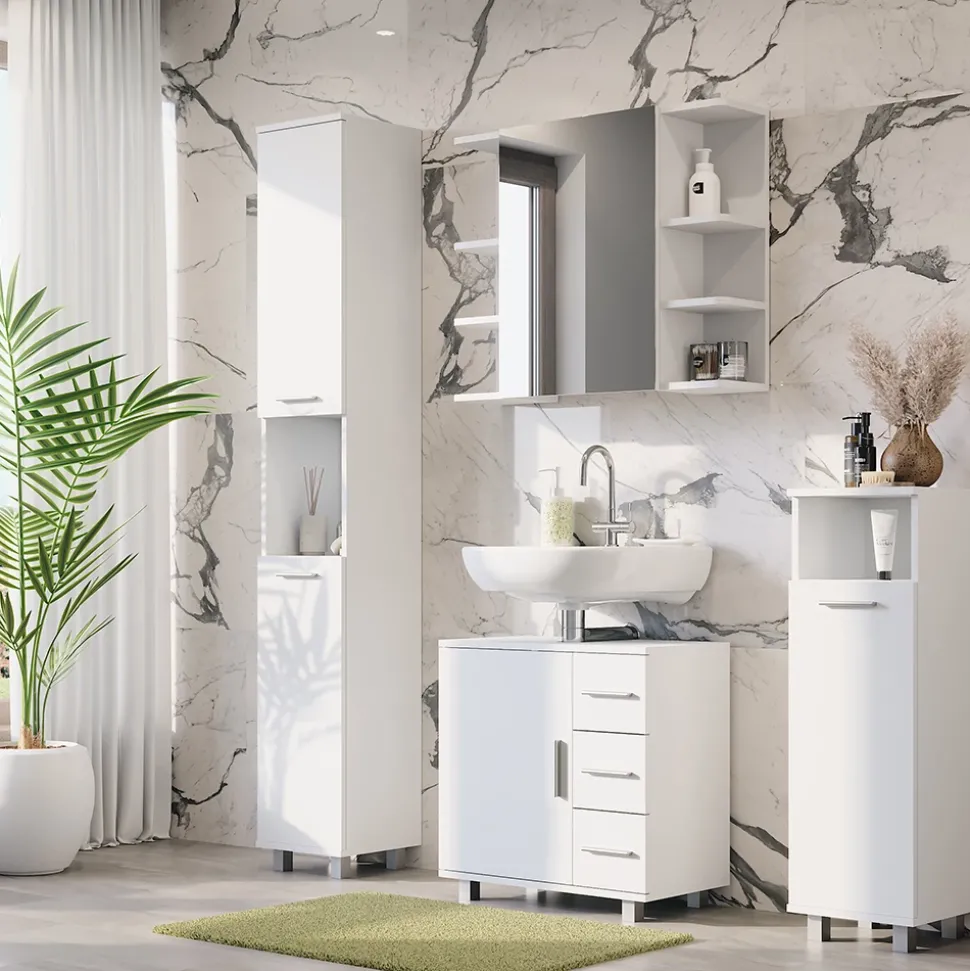 - Die Badmöbel ist stilvoll, funktional und praktisch. Sie bieten viel Stauraum und verleihen Ihrem Badezimmer ein modernes, ansprechendes Erscheinungsbild.