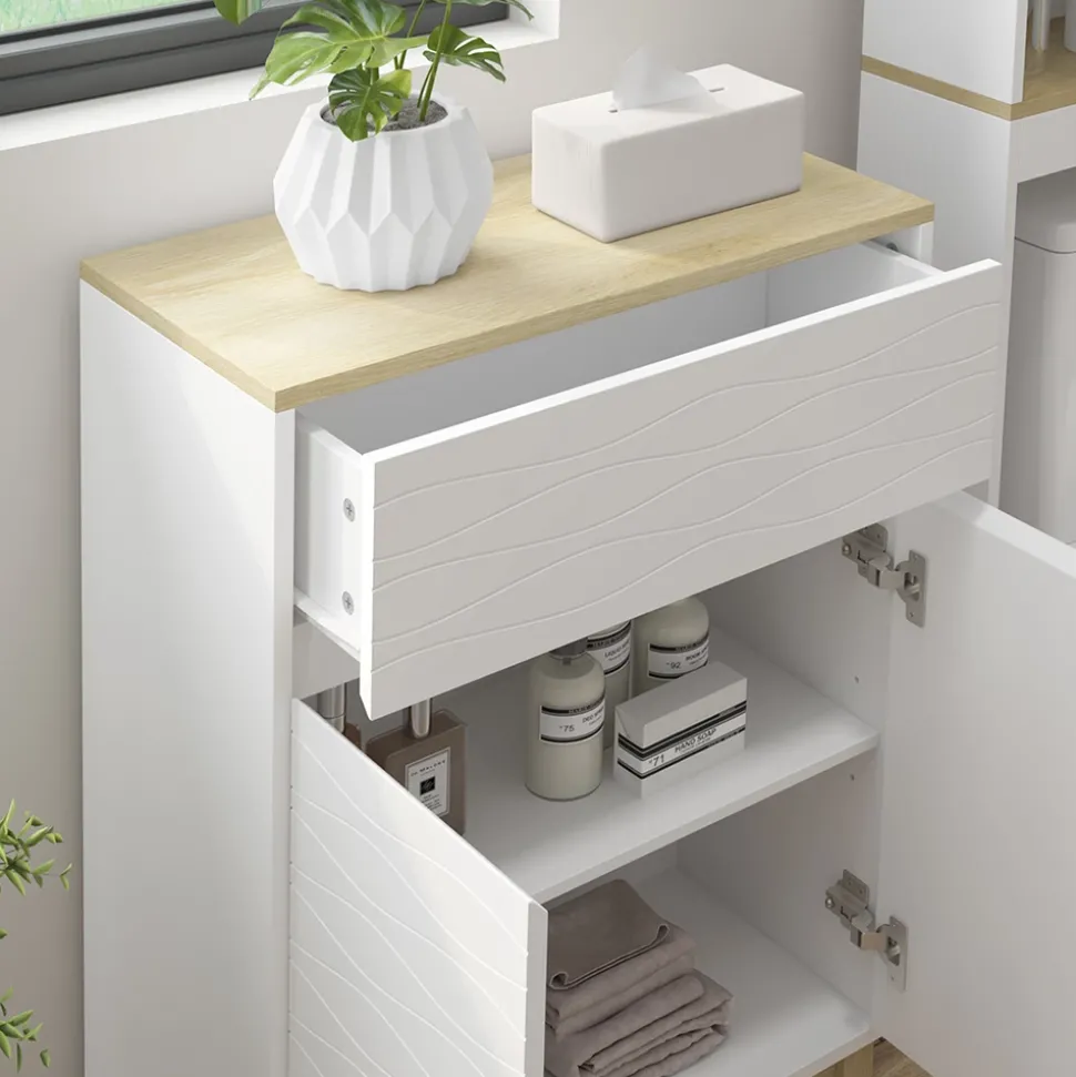- MAßE: Badschrank mit Schublade hat die folgenden Maße: Tiefe 30 cm, Breite 60 cm, Höhe 80 cm.