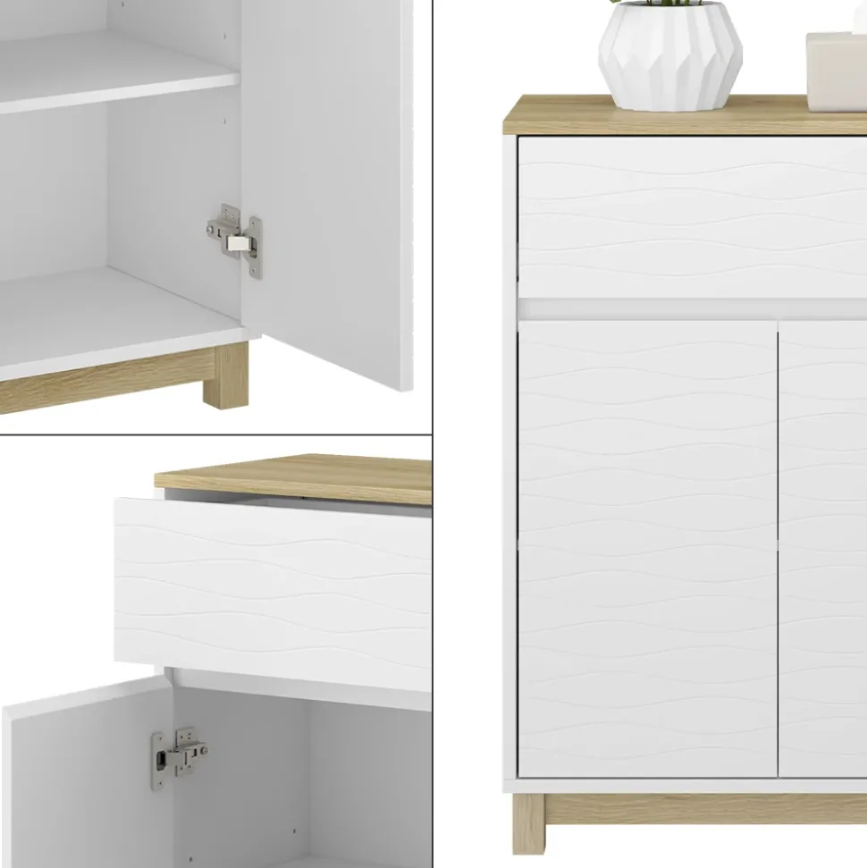 - MATERIAL: Der Midischrank mit Schublade besteht aus pflegeleichtem MDF, 15 mm.
