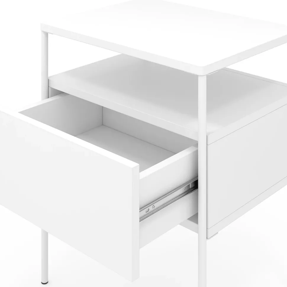 - MATERIAL: Die Nachtkommode verfügt über einen Korpus aus 15 mm Spanplatte und Füße aus 13 mm Stahlrohr.