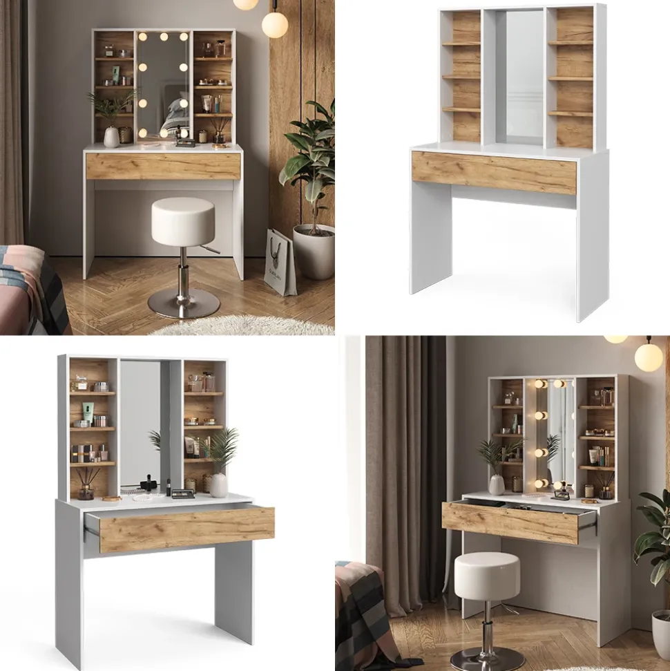 - MATERIAL: Unser Kosmetiktisch besteht aus robustem 16 mm Spanplattenmaterial. Der Spiegel ist aus hochwertigem Glas gefertigt. Leicht zu pflegen und von langer Haltbarkeit