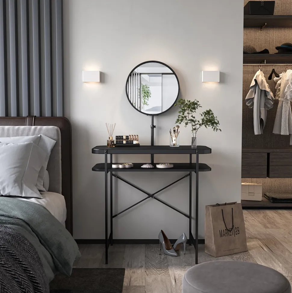 - Elegantes Design trifft auf Funktionalität: Der Frisiertisch mit Metallrahmen bietet mit seinen praktischen Ablagen den idealen Platz für Ihr Make-Up.