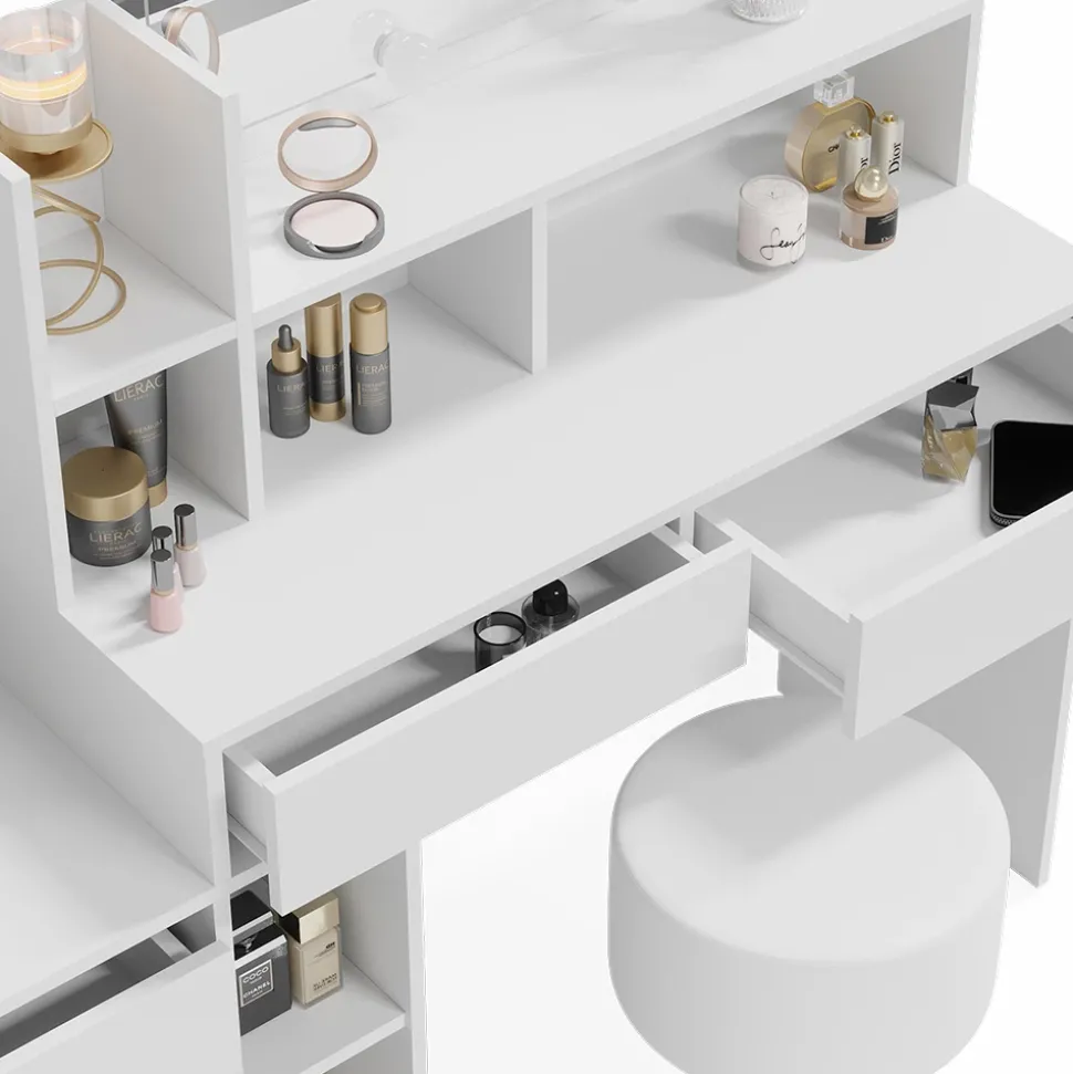 - LIEFERUMFANG: Im Paket enthalten sind der Schminktisch inklusive Montagematerial und -anleitung, 1 LED-Lampe und 1 Hocker, damit Sie sofort mit Ihrer Beauty-Routine beginnen können.