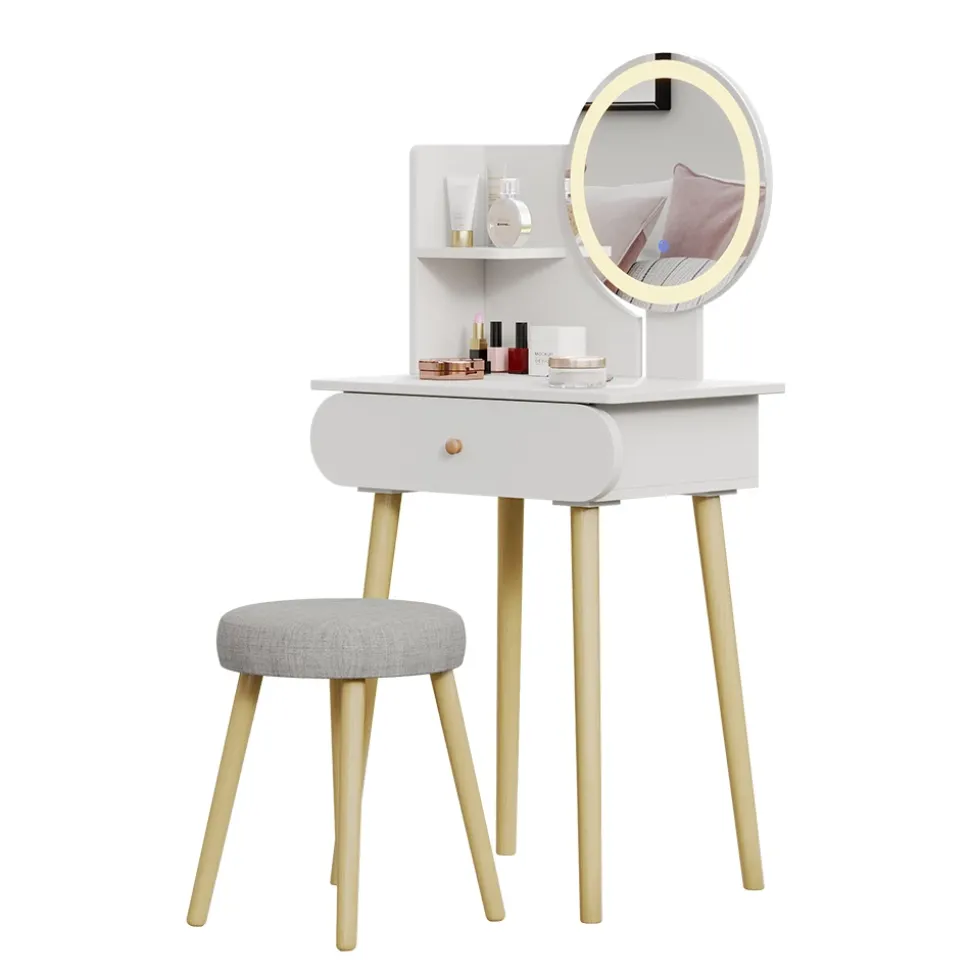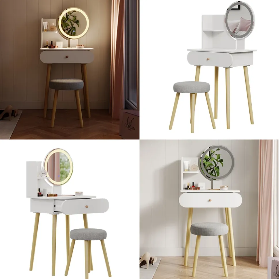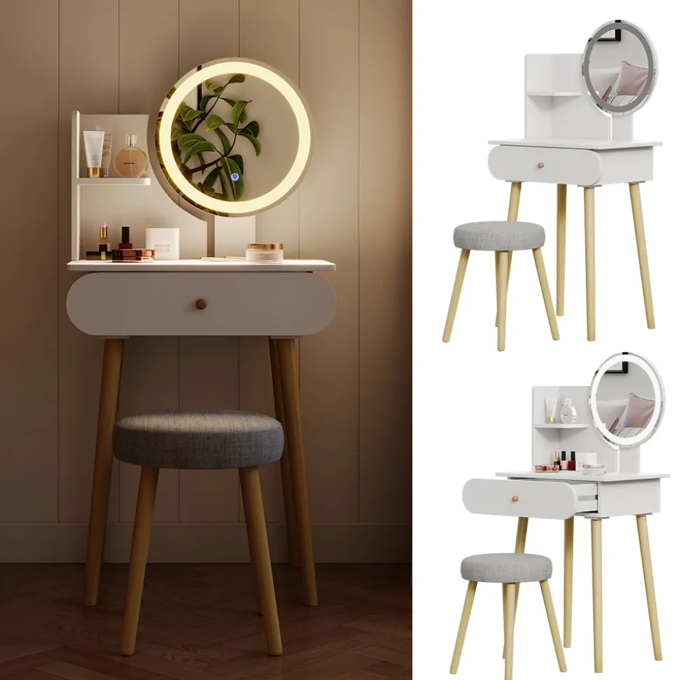 - Der Kosmetiktisch mit Spiegel bietet praktische Aufbewahrungsmöglichkeiten für Ihre Schönheitsprodukte und verfügt über eine integrierte Beleuchtung für optimale Sicht beim Schminken.