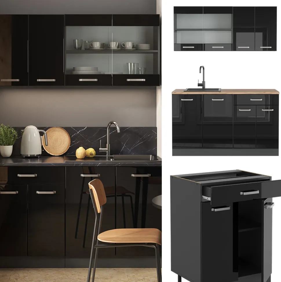 Schwarz, hochglänzend