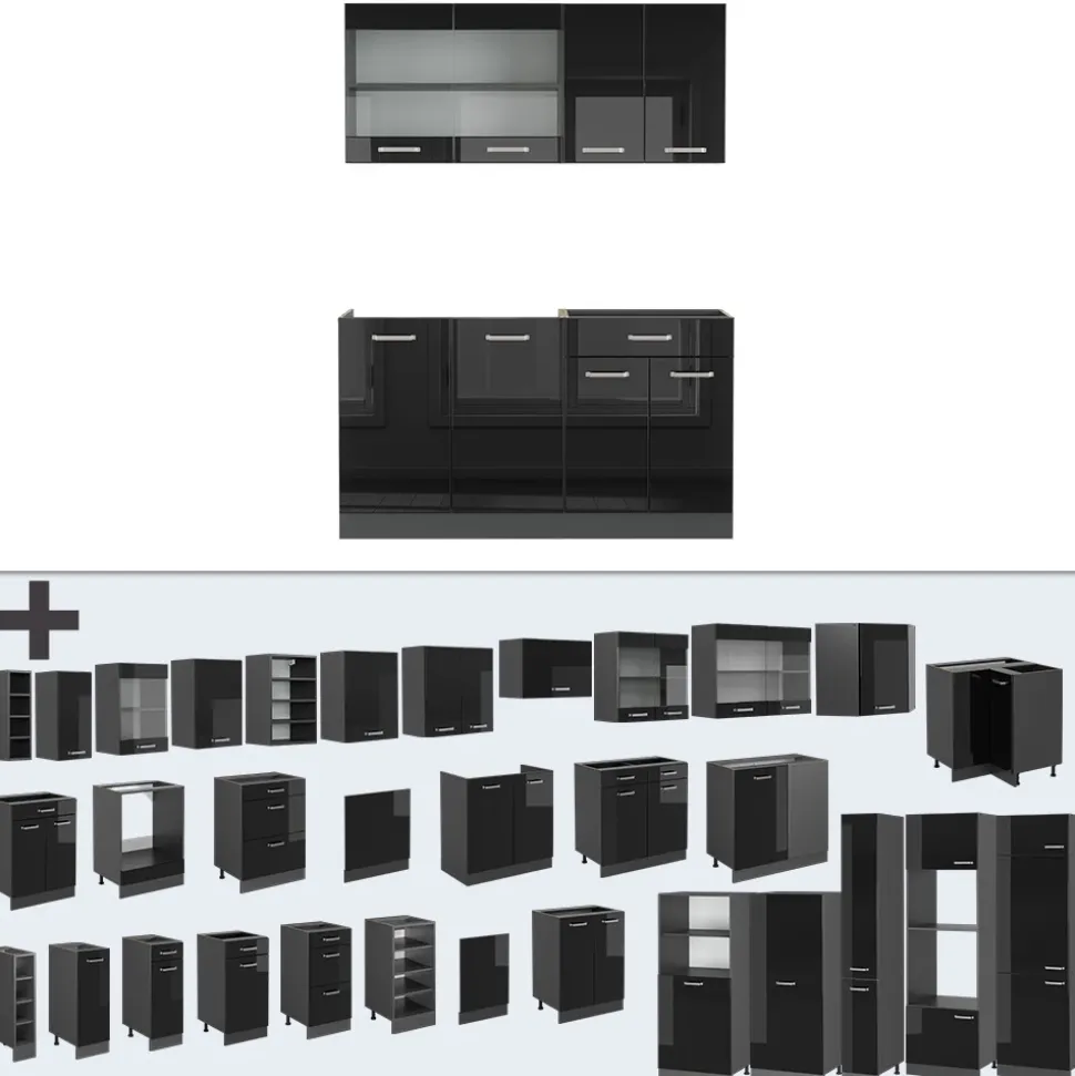 - Küchen der R-Line Serie bestechen durch optimales Design und universelle Einsetzbarkeit. Optional bieten wir auch vollintegrierte Geschirrspülblenden der Marke Vicco an.