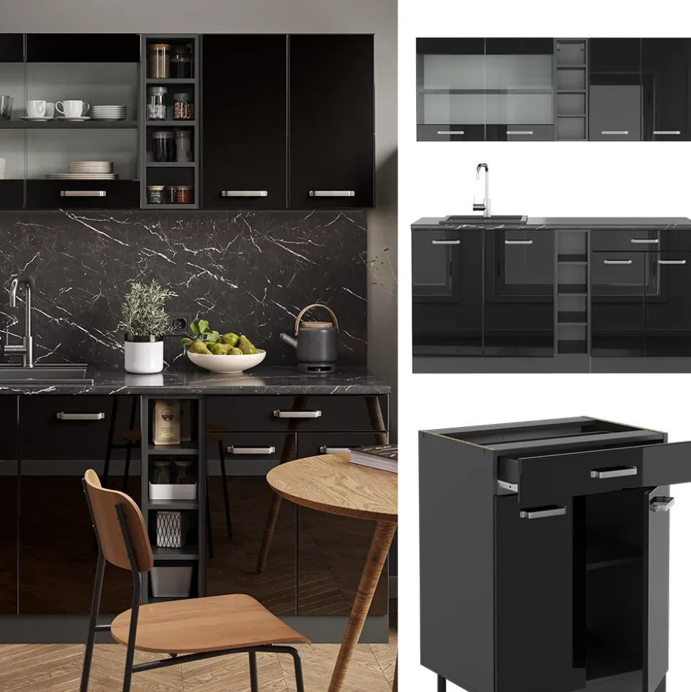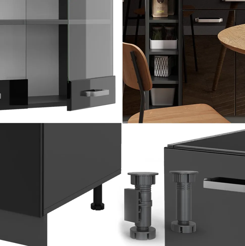 R-Line“ ist eine vielseitige Möbellinie mit Küchenzeilen, montagefertigen Komponenten und Schränken für den, Haushalts-, Wäsche- und Kreativbereich. Sie bietet eine breite Auswahl an Farben und Größen, die individuelle Lösungen für jeden Raum ermöglichen. Die Unterschränke sind mit verstellbaren Füßen ausgestattet, so dass sie einzeln oder als komplettes Set konfiguriert werden können, um den unterschiedlichen Bedürfnissen gerecht zu werden und die Funktionalität in verschiedenen Umgebungen zu verbessern.