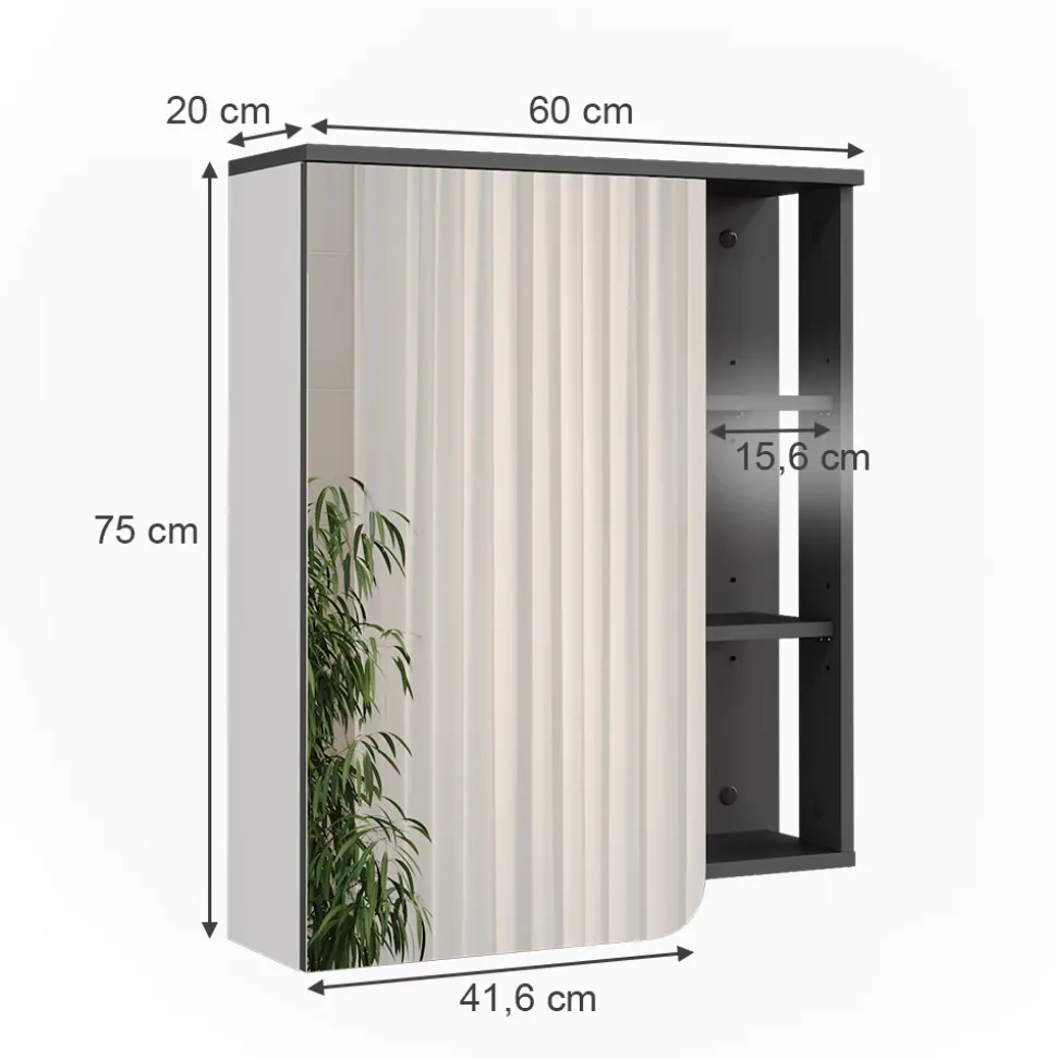 - MAßE: Der Badezimmerschrank mit Spiegel Tiefe: 20 cm, Breite: 60 cm, Höhe: 75 cm.