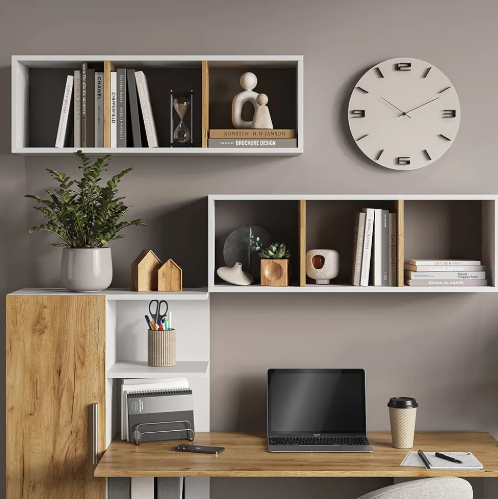 - MAßE: Das Bücherregal, 2er Set, hat eine Tiefe von 22 cm, eine Breite von 90 cm und eine Höhe von 30 cm.