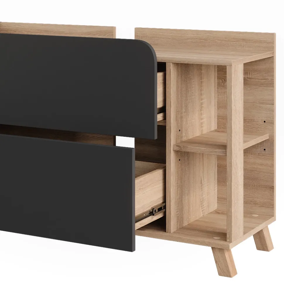 - Der Waschtischunterschrank verfügt über 2 offene Fächer und 2 Schubladen, die sich per Push-to-open-Funktion bequem öffnen lassen.