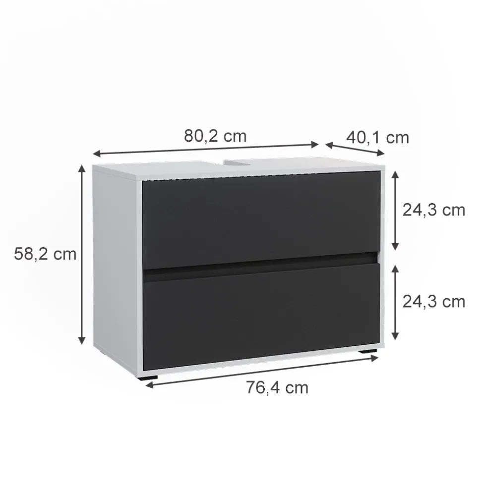 - MAßE: Der Badezimmerunterschrank hat eine Breite von 80,2 cm, eine Höhe von 58,2 cm und eine Tiefe von 40,1 cm. Alle detaillierten Größen sind auf den Fotos angegeben.