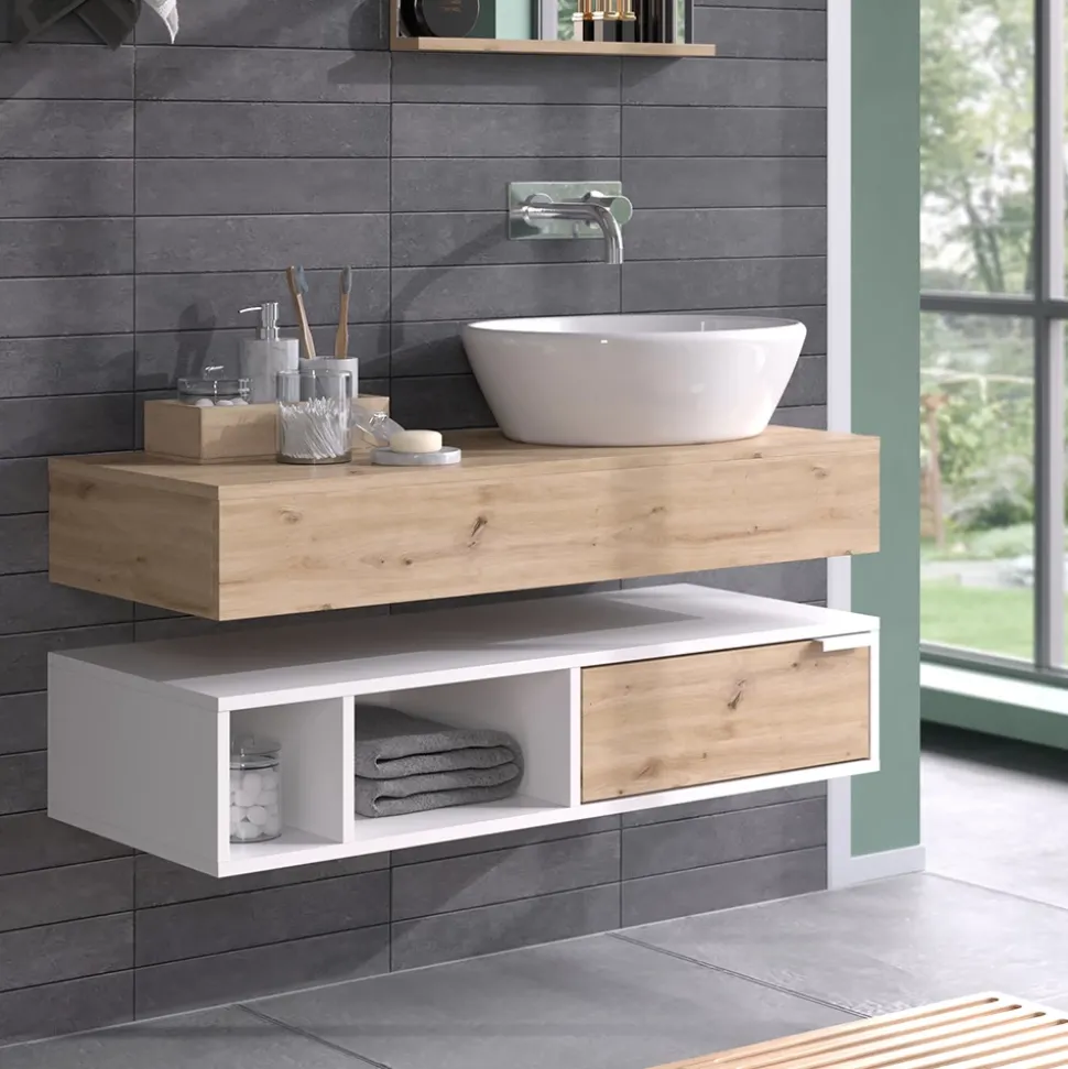 - PRODUKTMAßE: Der Waschbeckenschrank verfügt über eine obere Ablage von 100 x 15 x 40 cm und ein unteres Regal von 100 x 20 x 40 cm (BxHxT) und wiegt 24,2 kg.