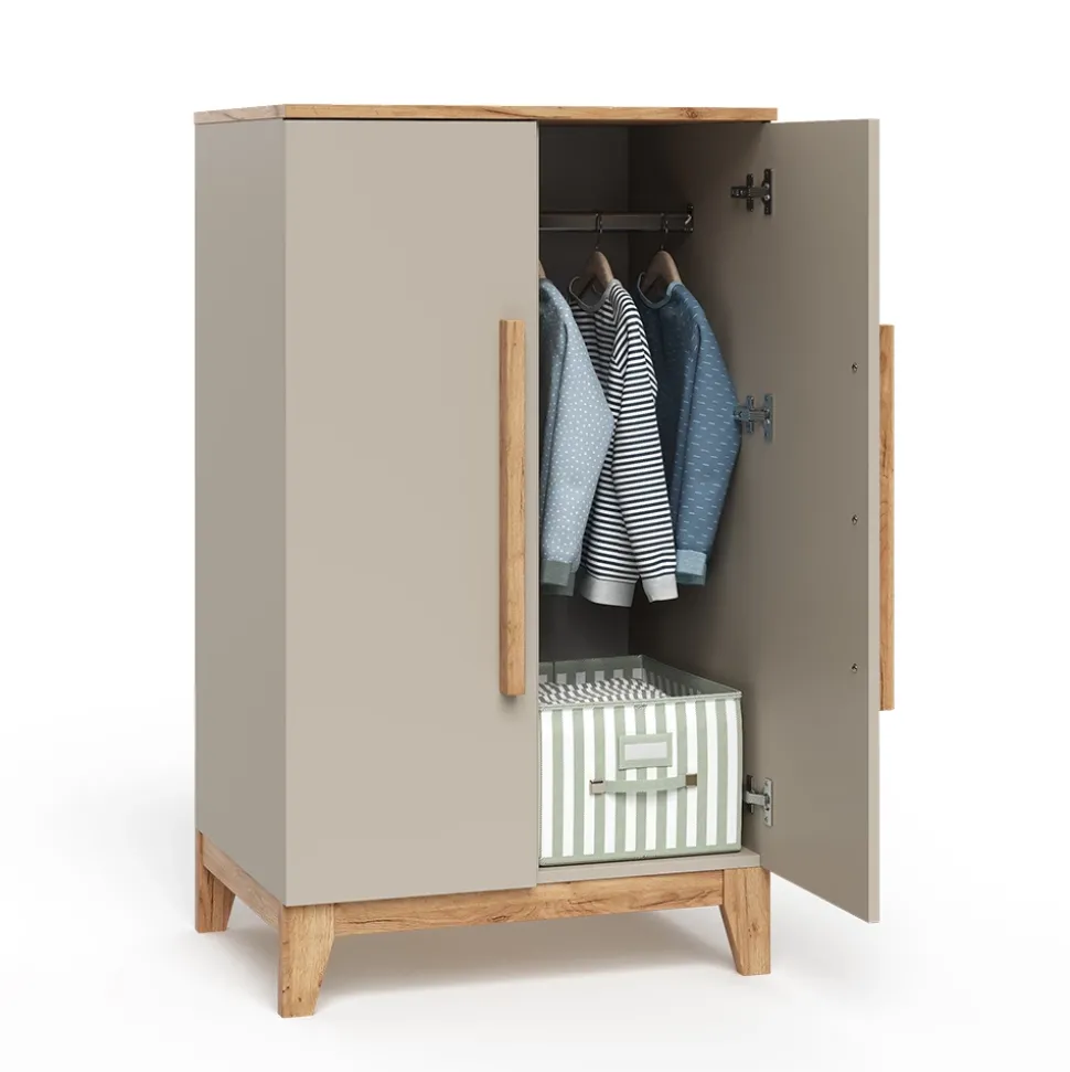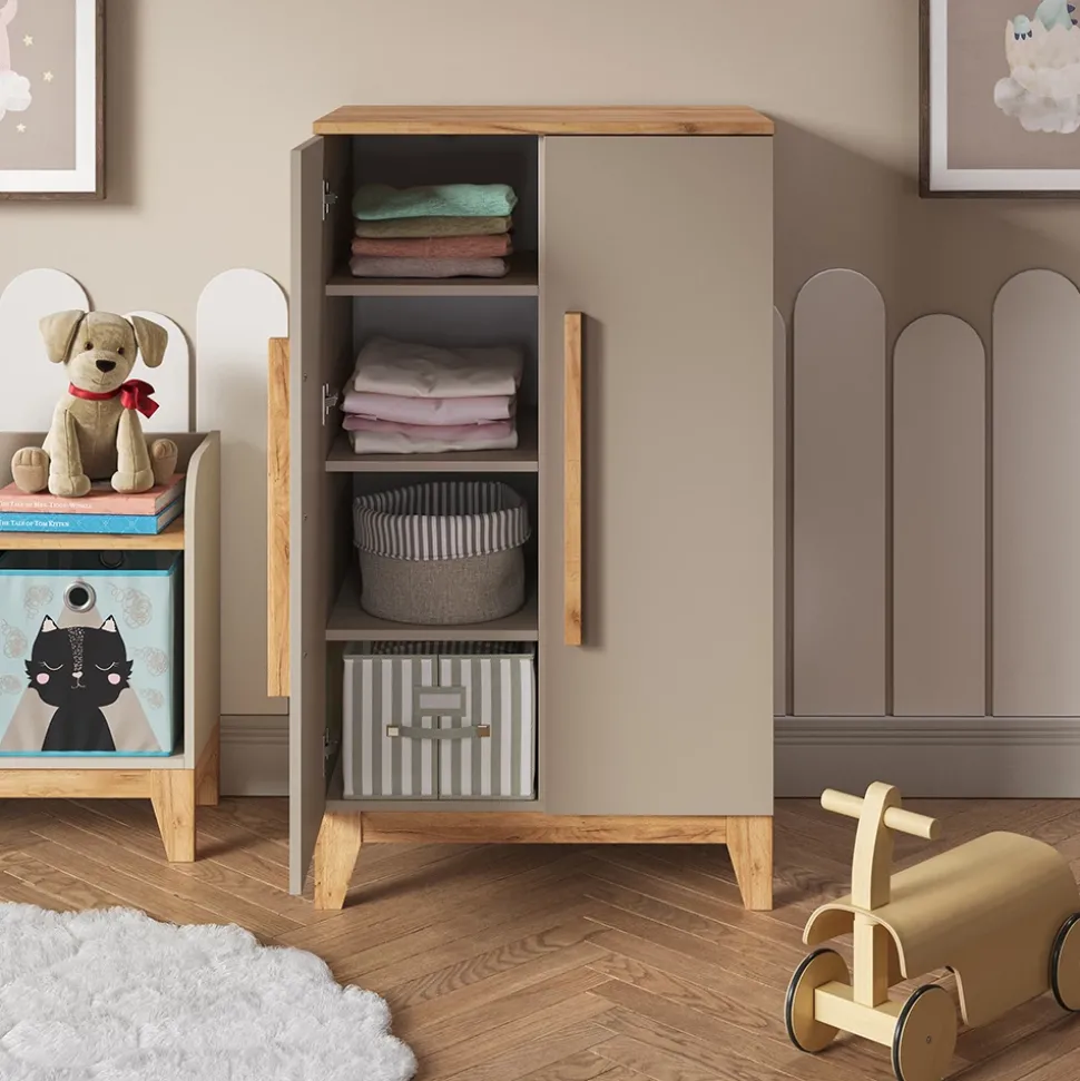 - Der Kinderzimmerschrank bietet Platz für Kleidung und Spielzeug, sodass Ihr Kind Ordnung halten kann. Mit seinem ansprechenden Design fügt er sich harmonisch in jedes Kinderzimmer ein.