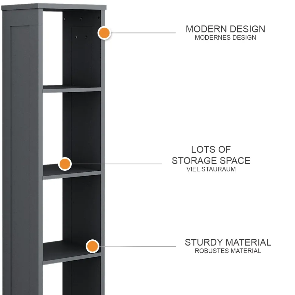 - MAßE: Das Bücherregal für Kinder hat eine Tiefe von 30,6 cm, eine Breite von 35,2 cm und eine Höhe von 159,5 cm.