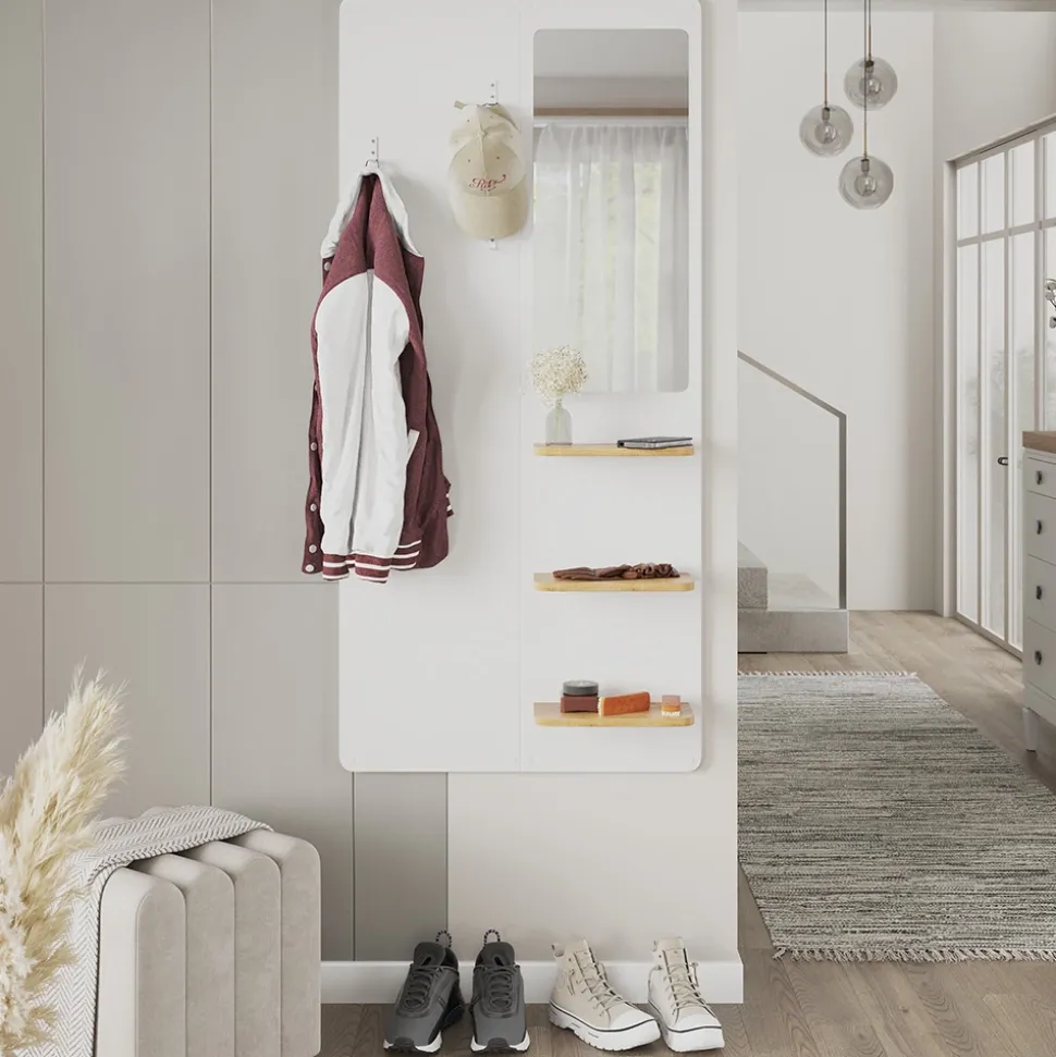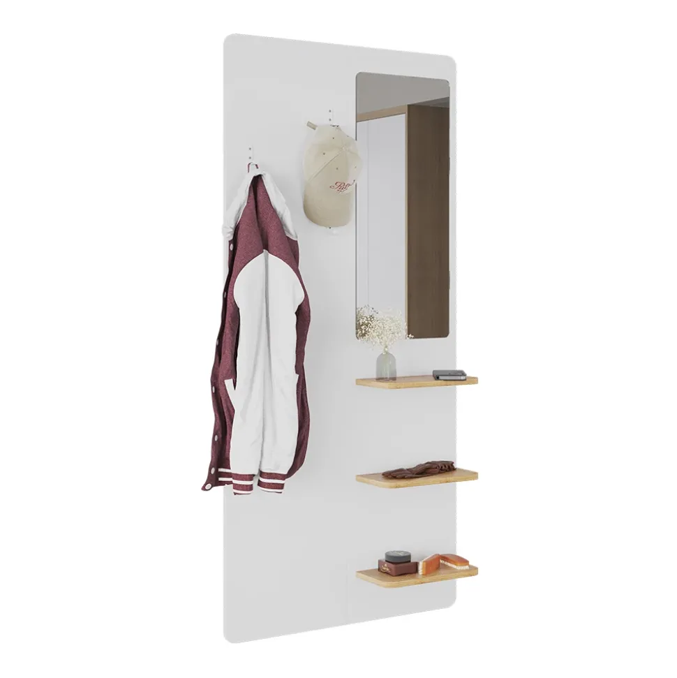 Die Wandgarderobe Jochen überzeugt mit ihrem modernen und platzsparenden Design. Sie bietet praktische Haken für Jacken, Taschen und Accessoires und verleiht dem Eingangsbereich eine stilvolle Note.