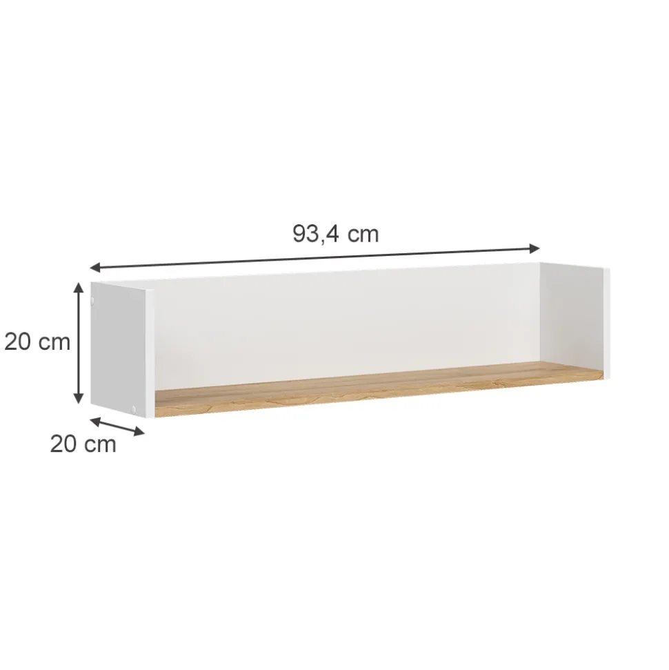 - MAßE: Das Bücherregal misst 93,4 cm in der Breite, 20 cm in der Tiefe und 20 cm in der Höhe.