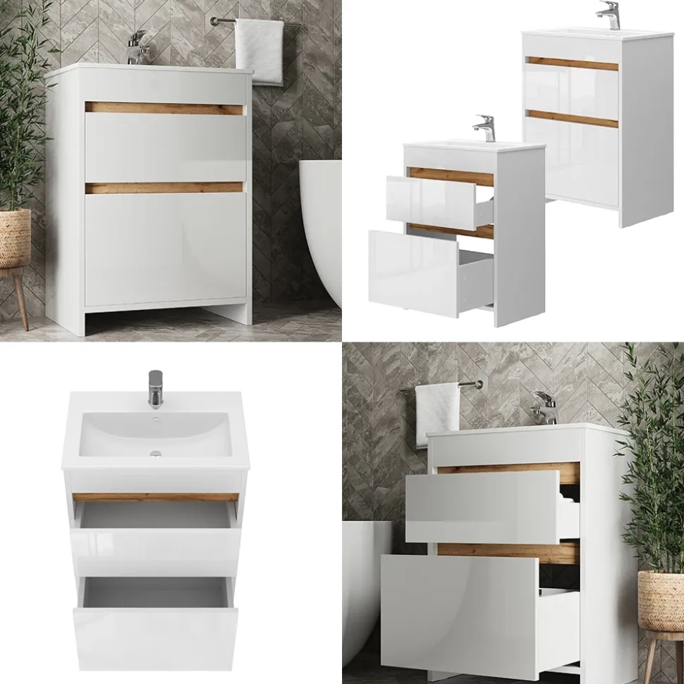 Schubladen mit „Häfele“-Soft-Close-Scharnieren: Erleben Sie sanftes Schließen und ein Höchstmaß an Komfort bei jedem Zugriff. Durch die edle Hochglanzfront verleihen Sie Ihrem Badezimmer einen Hauch von Eleganz und zeitlosem Stil. Mit dem inklusiven Waschbecken erhalten Sie eine praktische Komplettlösung, sparen Zeit bei der Auswahl und genießen ein komfortables Rundum-Paket. Mit der pflegeleichten Oberfläche erleichtern Sie sich das Leben, denn sie ist einfach zu reinigen und zu pflegen.