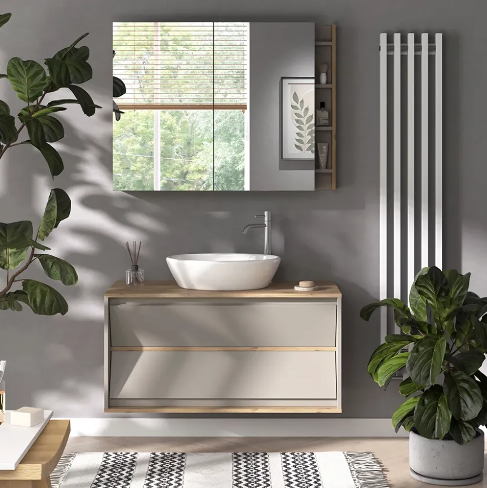 Die Möbelserie Edelin umfasst stilvolle Badezimmerschränke, die Eleganz und praktische Aufbewahrung perfekt kombinieren