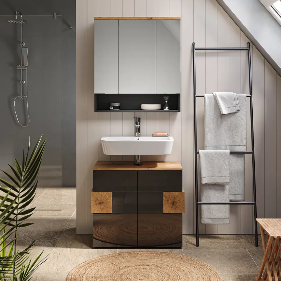 Tauchen Sie ein in die Welt der Eleganz mit der Möbelserie „Eden“. Erleben Sie eine Vielzahl von Badezimmermöbeln, die sowohl als einzelne Einheiten als auch als Sets erhältlich sind. Die Fronten aus MDF verleihen den Möbelstücken eine hochwertige Optik.