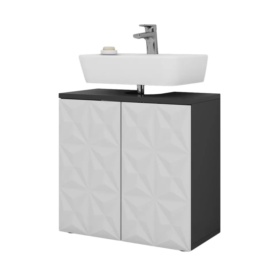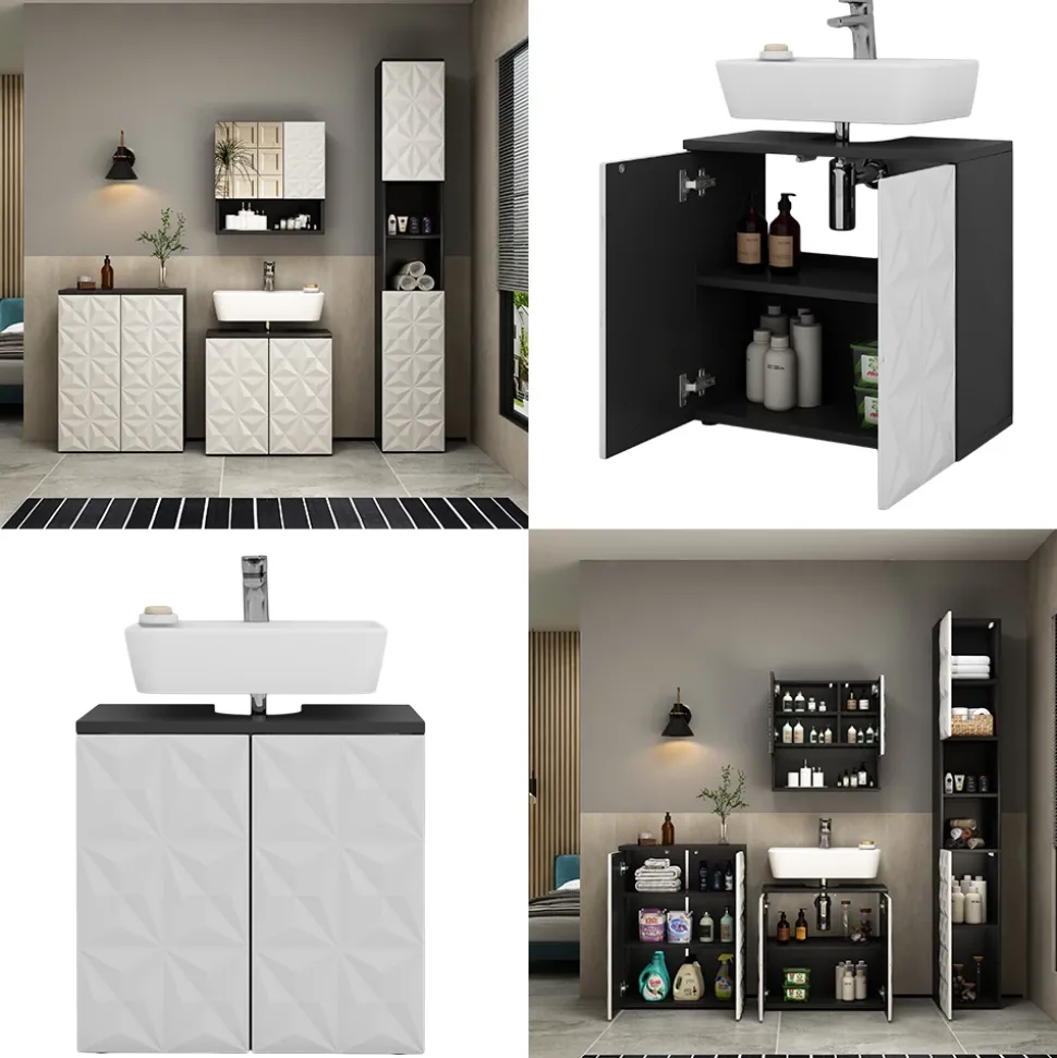 - MAßE: Der Unterschrank für das Badezimmer hat folgende Abmessungen: Breite: 60 cm, Höhe: 57 cm, Tiefe: 30 cm. Alle detaillierten Größen sind auf den Fotos angegeben.