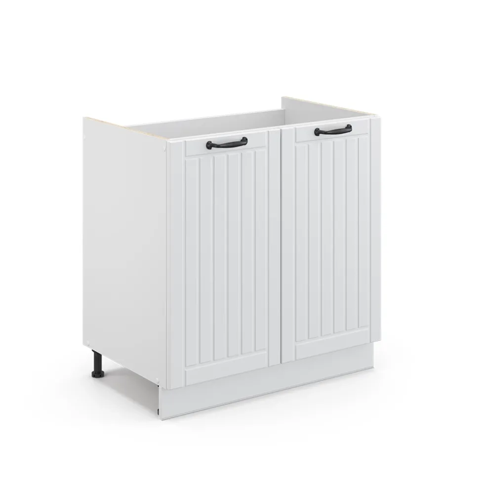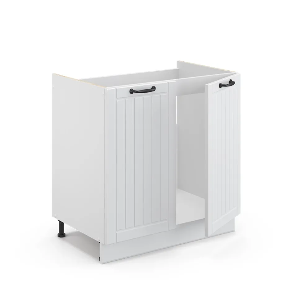 LIEFERUMFANG: Spülenunterschrank (Hinweis: Dekoration nicht im Lieferumfang enthalten), Montageanleitung, Montagematerial.