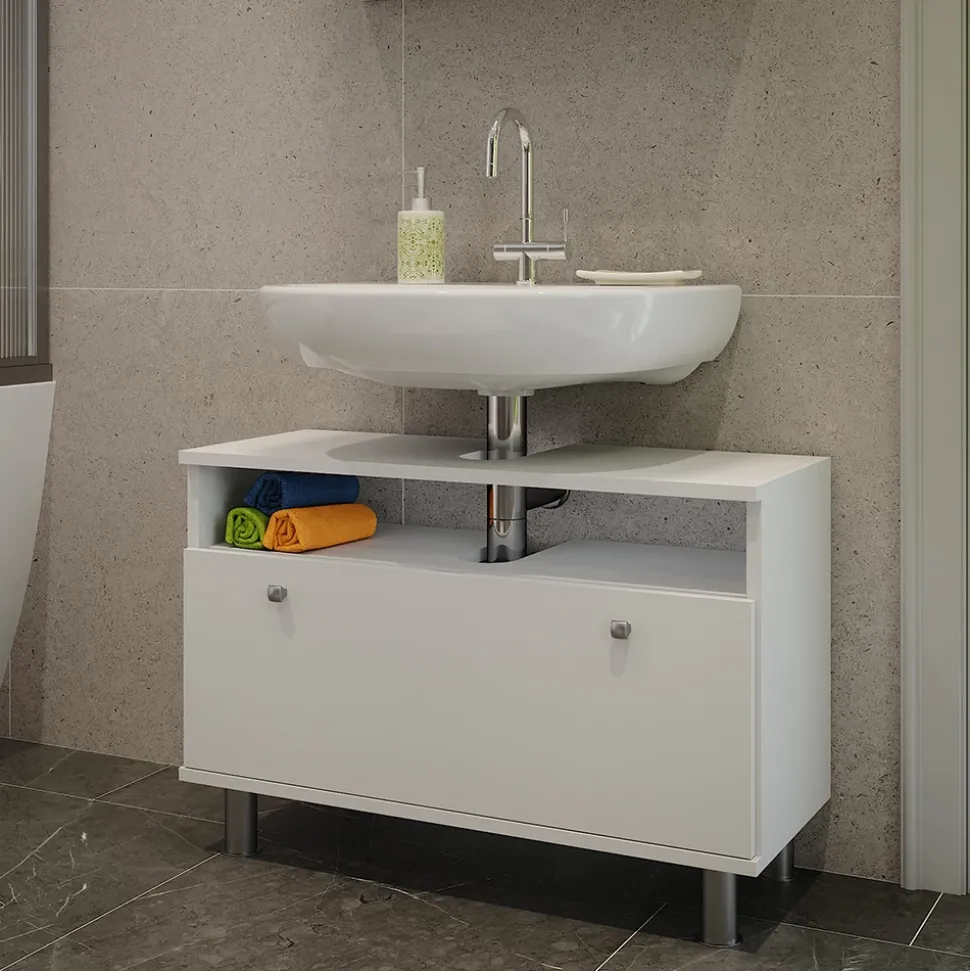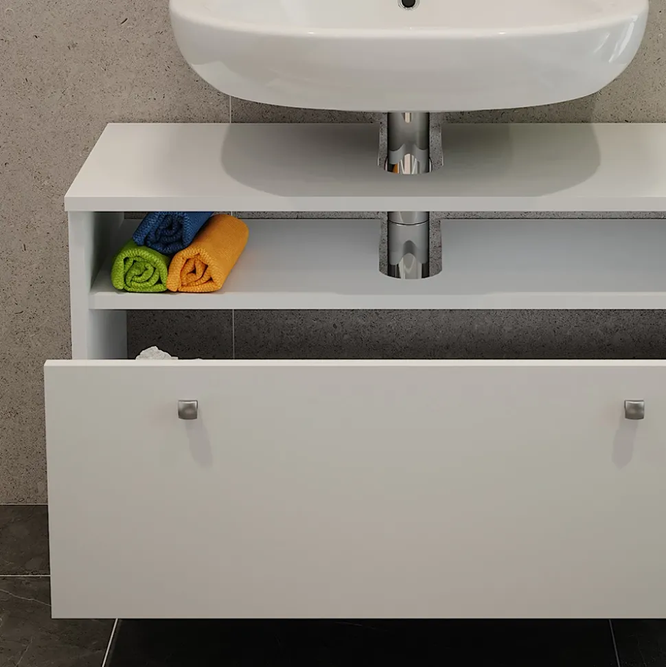 - Der Waschtischunterschrank mit Schublade bietet viel Stauraum dank seiner großen Schublade. Er ist platzsparend und funktional gestaltet, ideal für jedes Badezimmer.