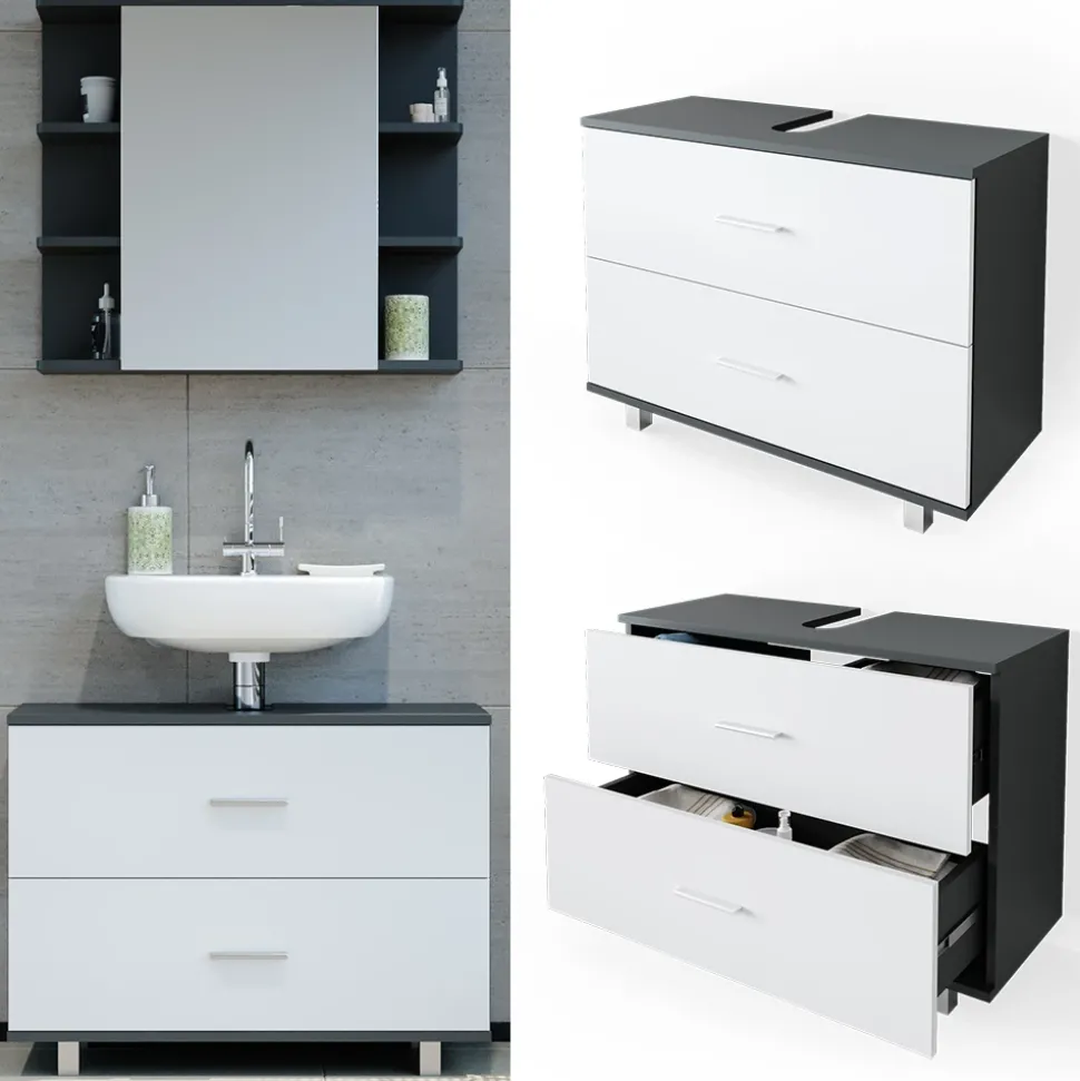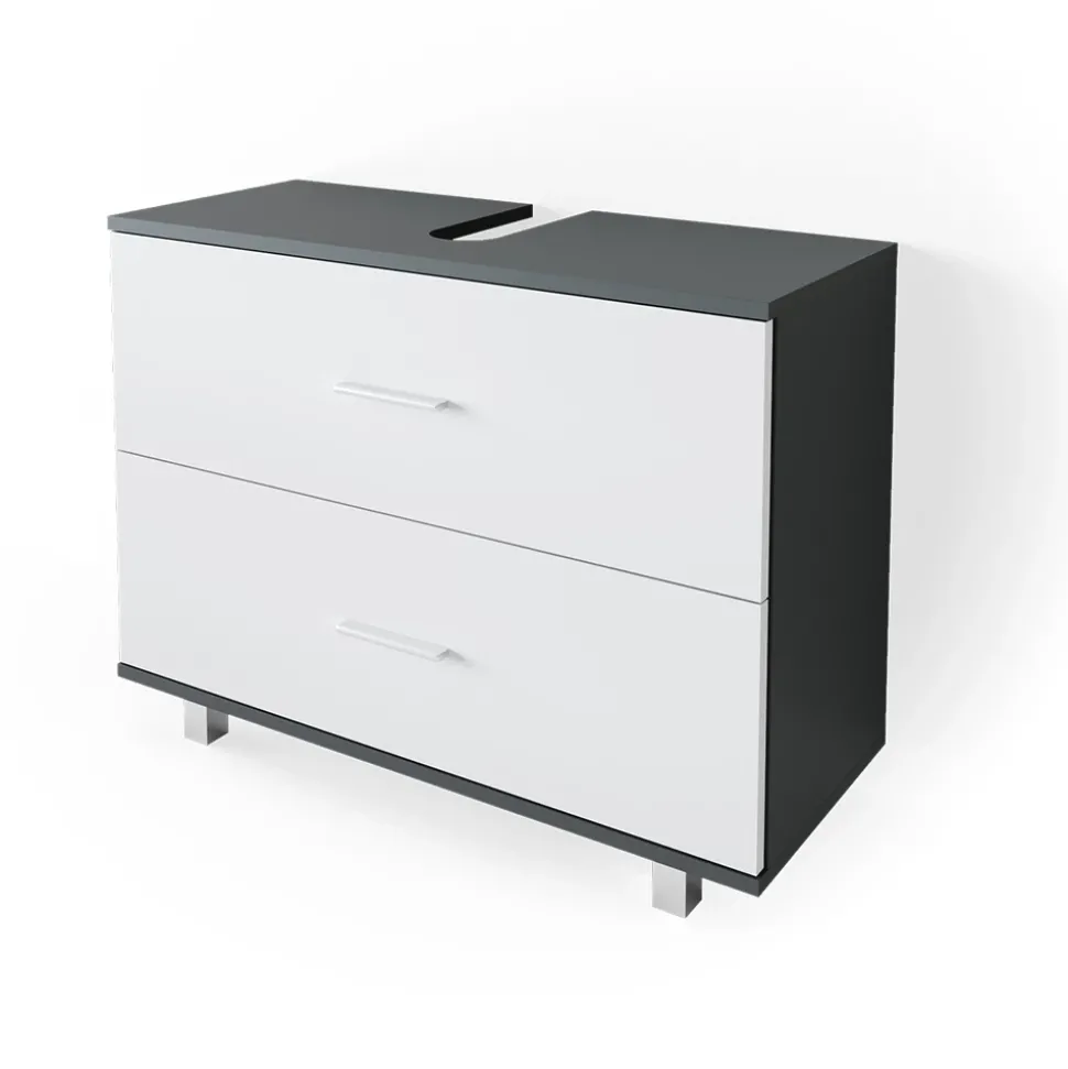 - Der Waschtischunterschrank mit Schubladen bietet viel Stauraum mit zwei großen Schubladen und einer Aussparung für den Siphon.