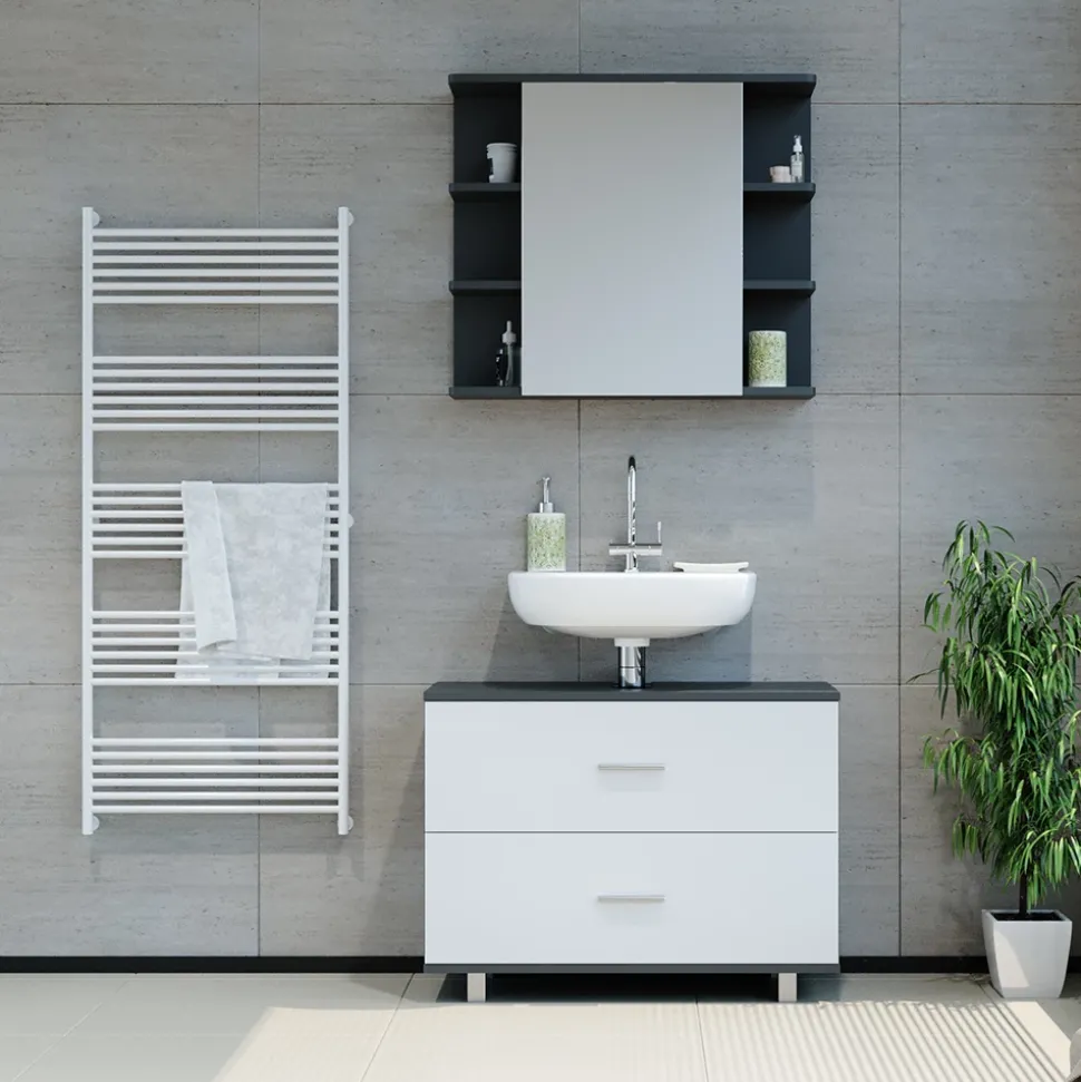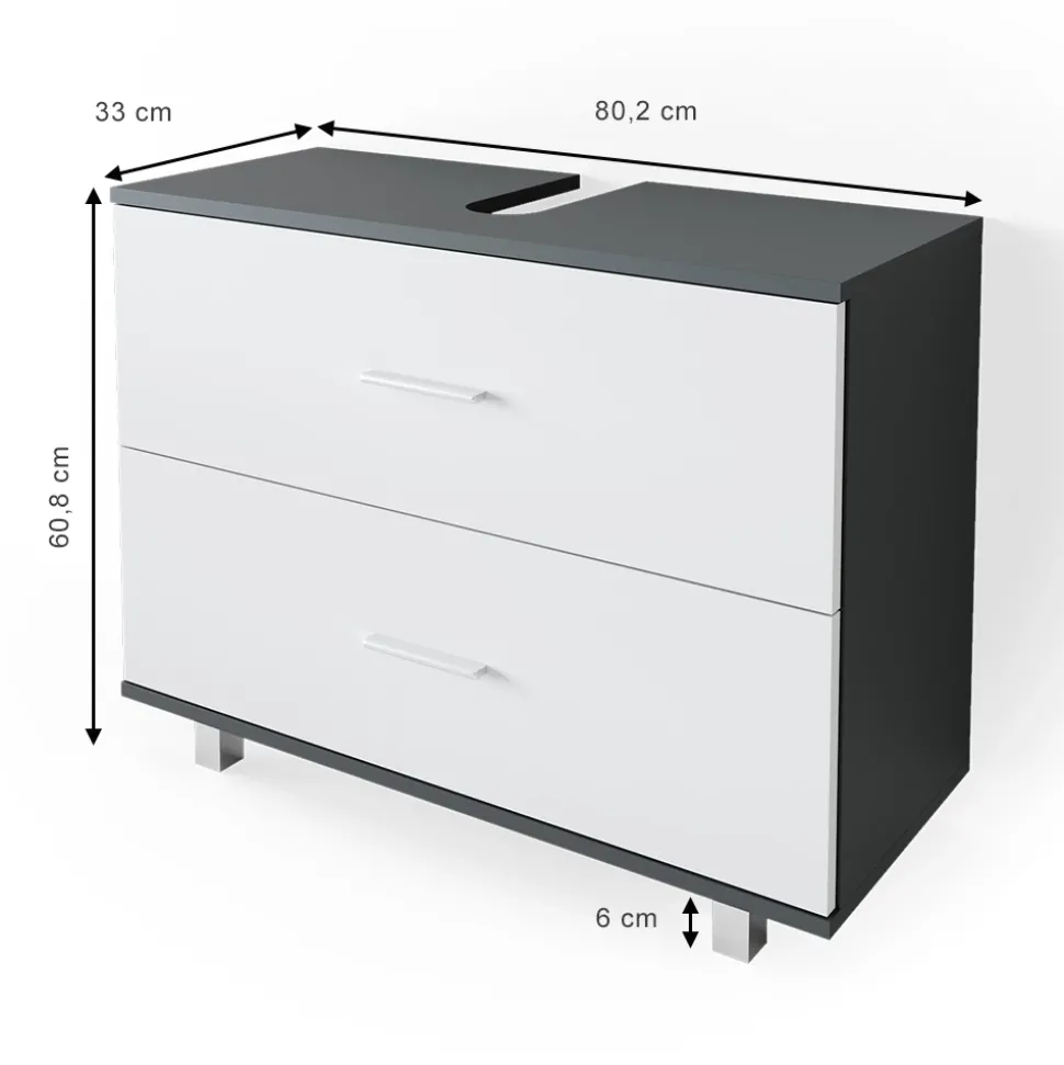 - MAßE: Der Unterschrank Badezimmer hat eine Breite von 80 cm, eine Höhe von 60,8 cm und eine Tiefe von 33 cm. Alle detaillierten Größen sind auf den Fotos angegeben.