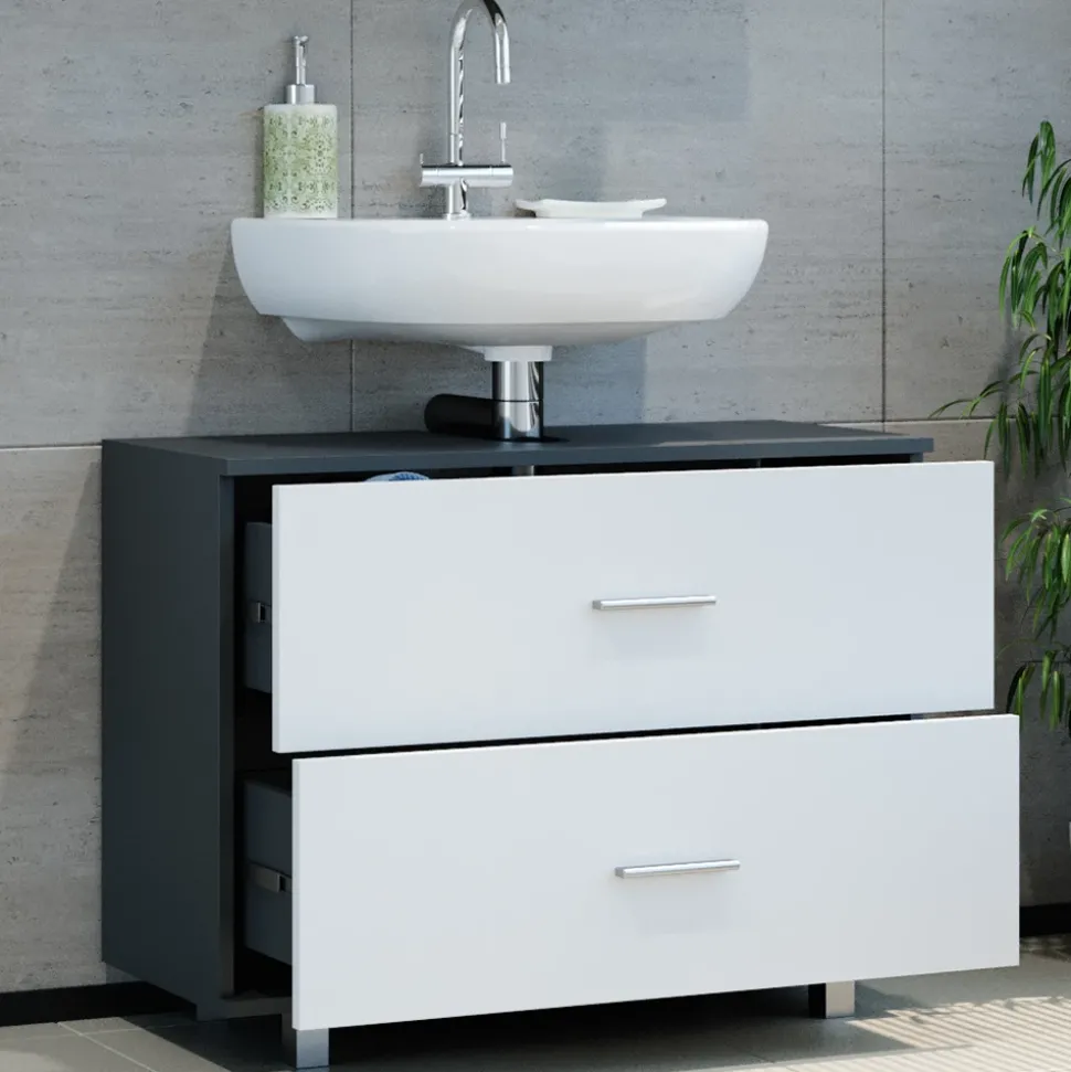 Der Ilias Waschbeckenunterschrank ist ein praktischer und funktioneller Badezimmerschrank. Er hat zwei große Schubladen, in denen Sie alles verstauen können, was Sie fürs Baden und Duschen benötigen. Der Unterschrank hat eine Aussparung für einen Siphon, so dass Sie das Wasser problemlos ablassen können. Dieser Waschbeckenunterschrank ist aus hochwertigen Materialien gefertigt und sehr langlebig. Er ist auch kompatibel mit anderen Artikeln der Ilias-Kollektion.